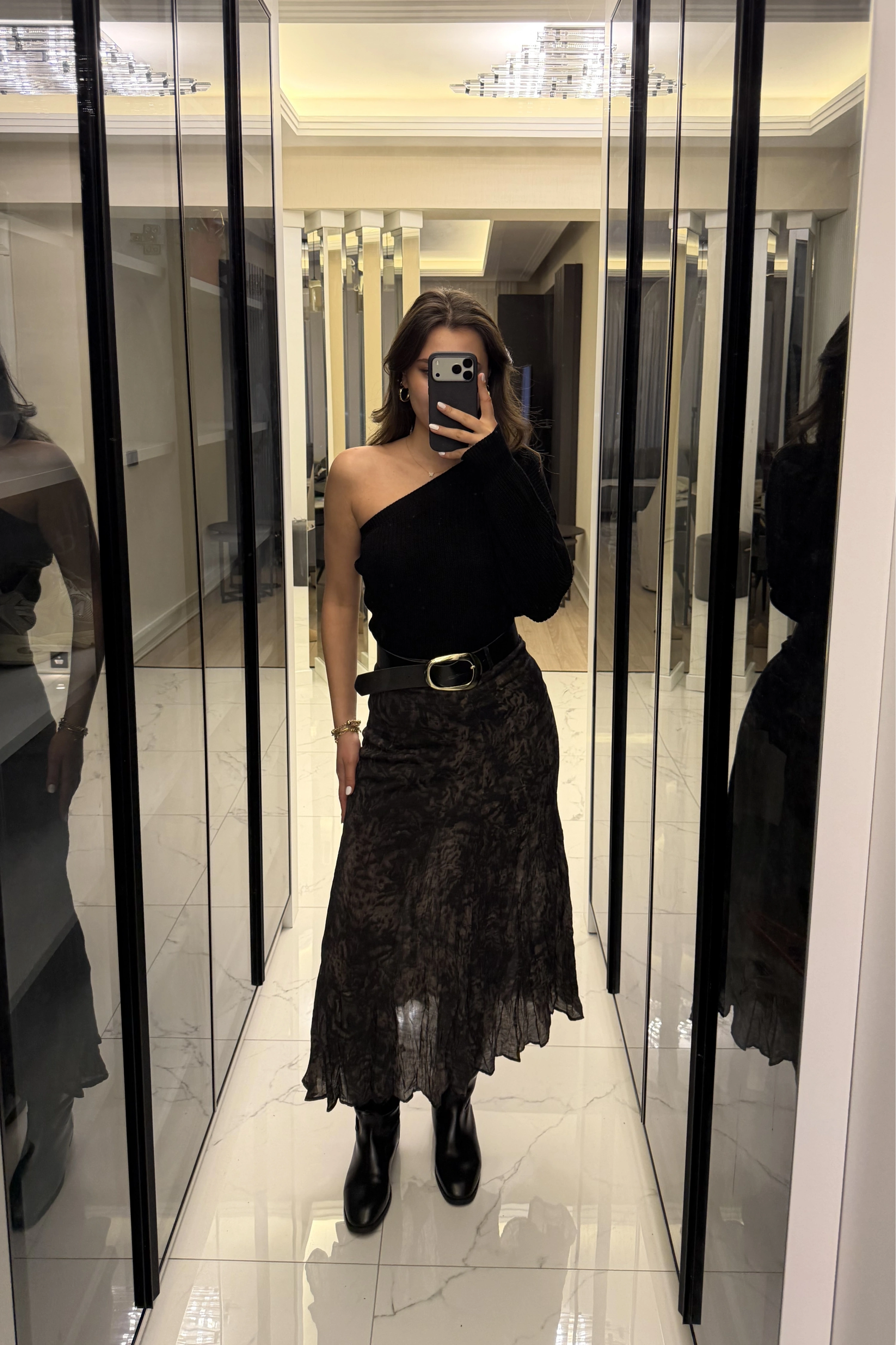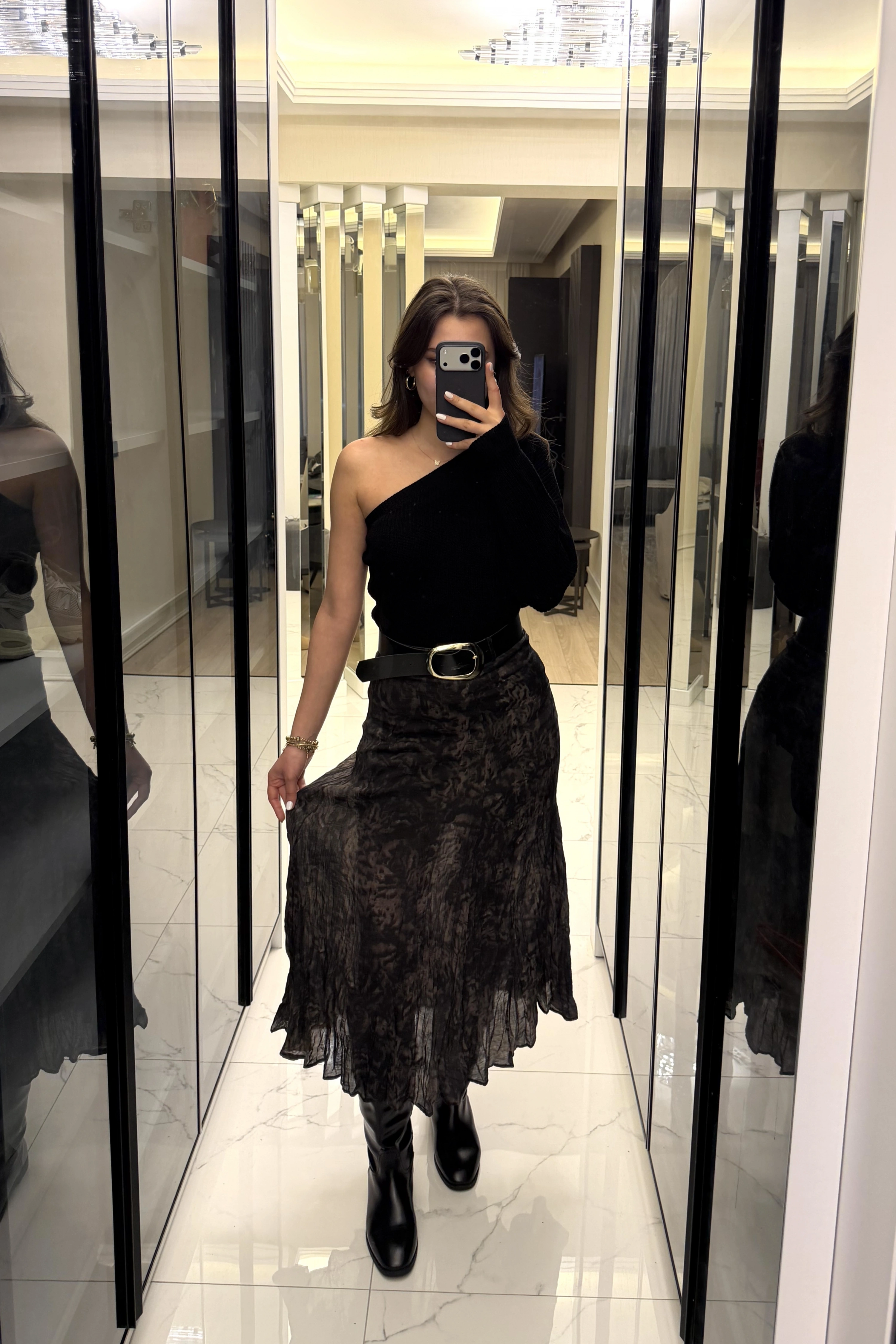 Acı Kahve Zr Muadil Kemerli Desenli Etek