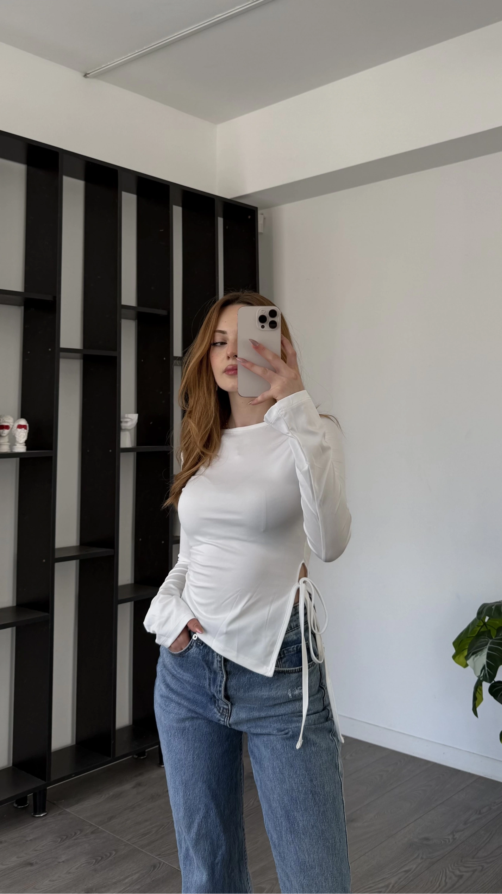 Beyaz İspanyol Kol Tek Omuz Bluz
