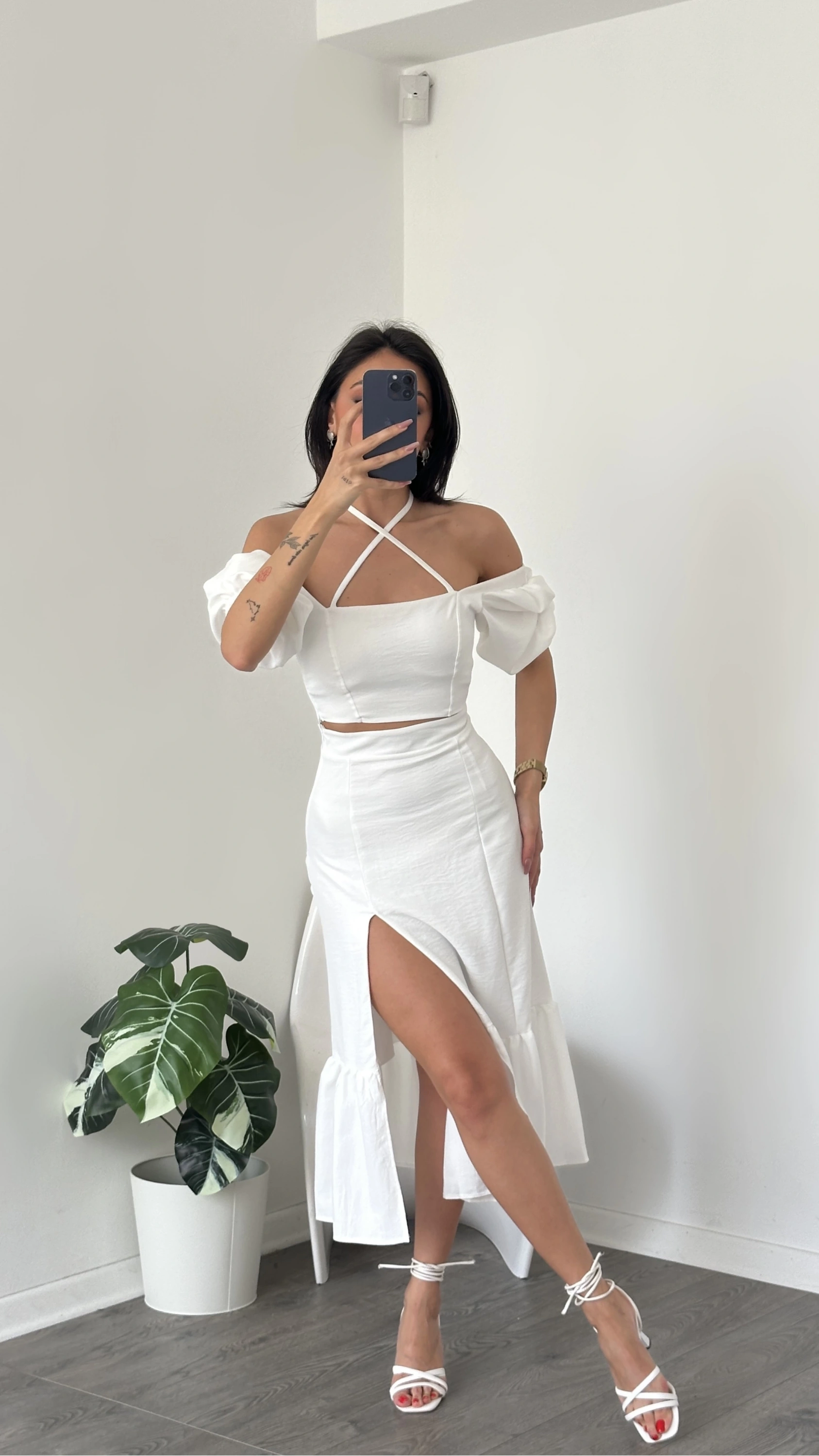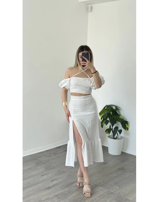 Beyaz İspanyol Kol Tek Omuz Bluz