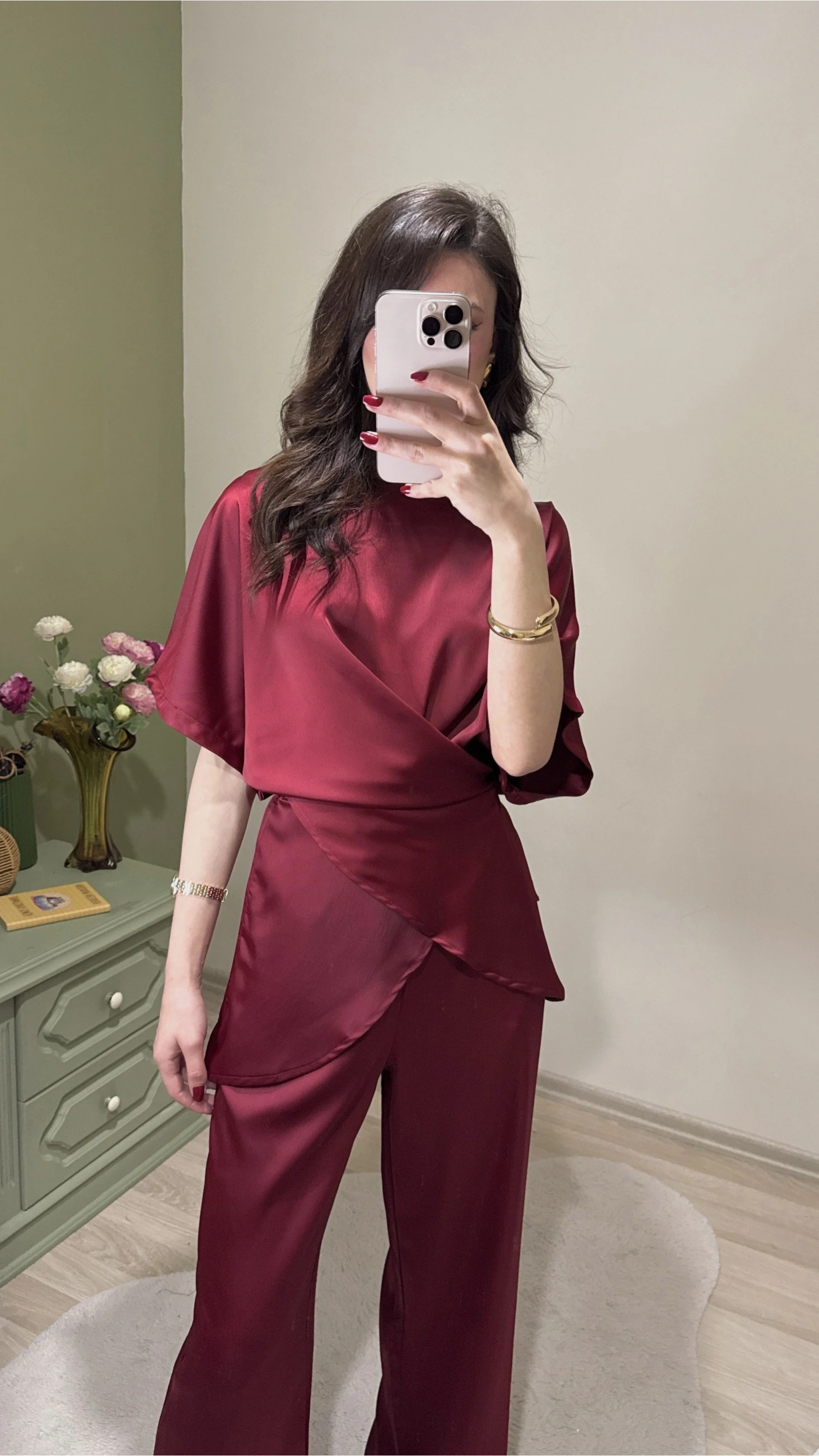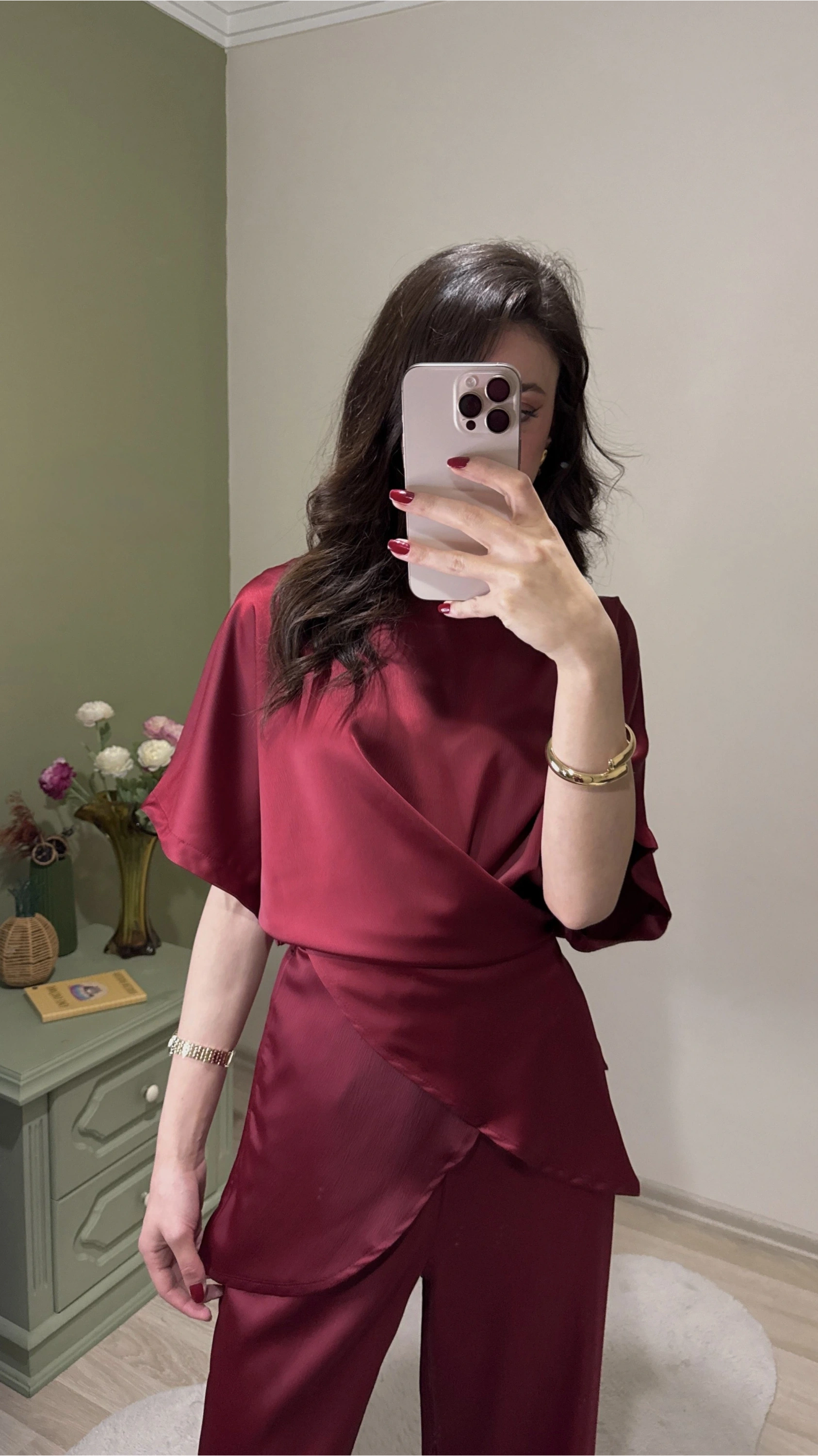 Bordo Helena Düşük Omuzlu Basic Bluz