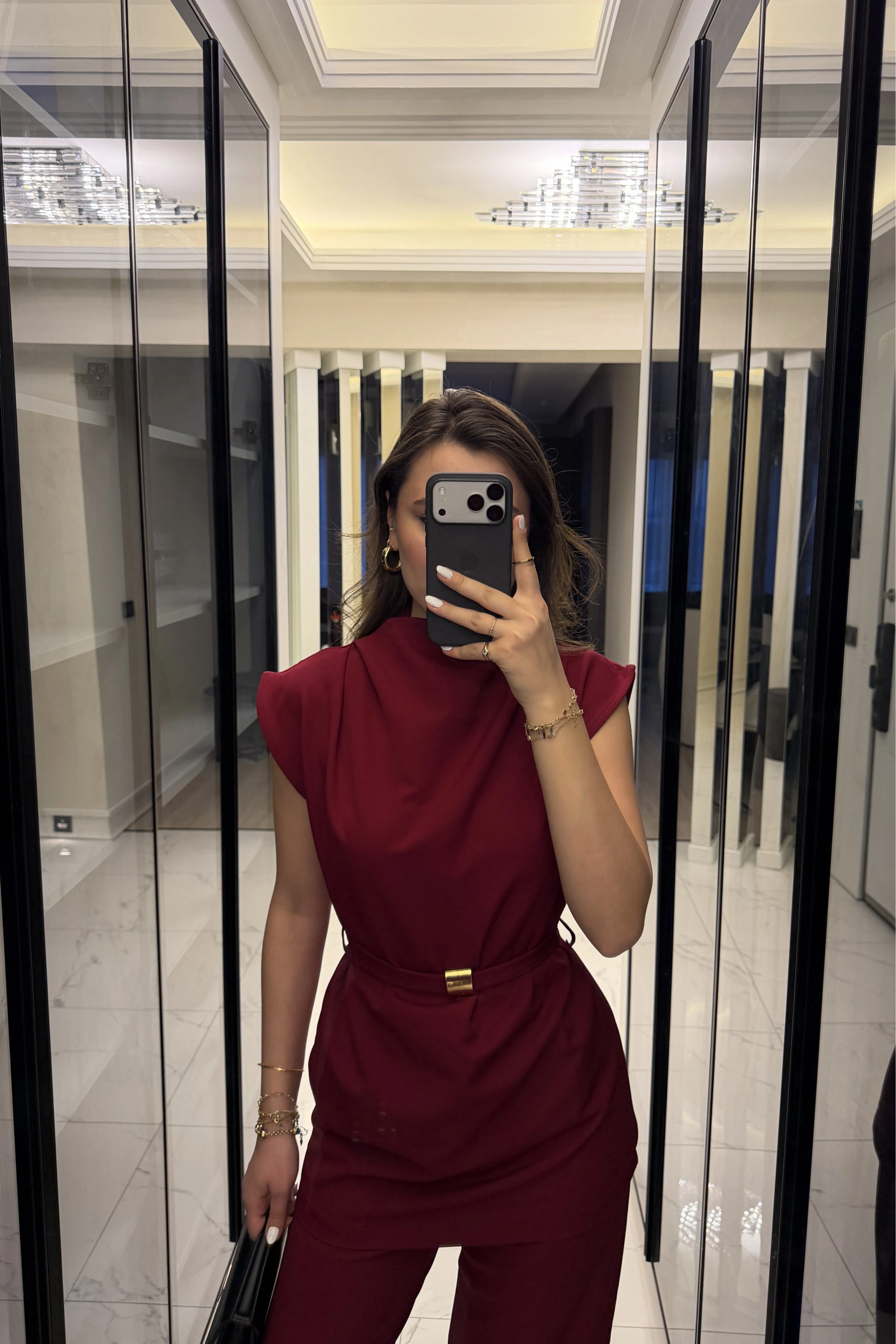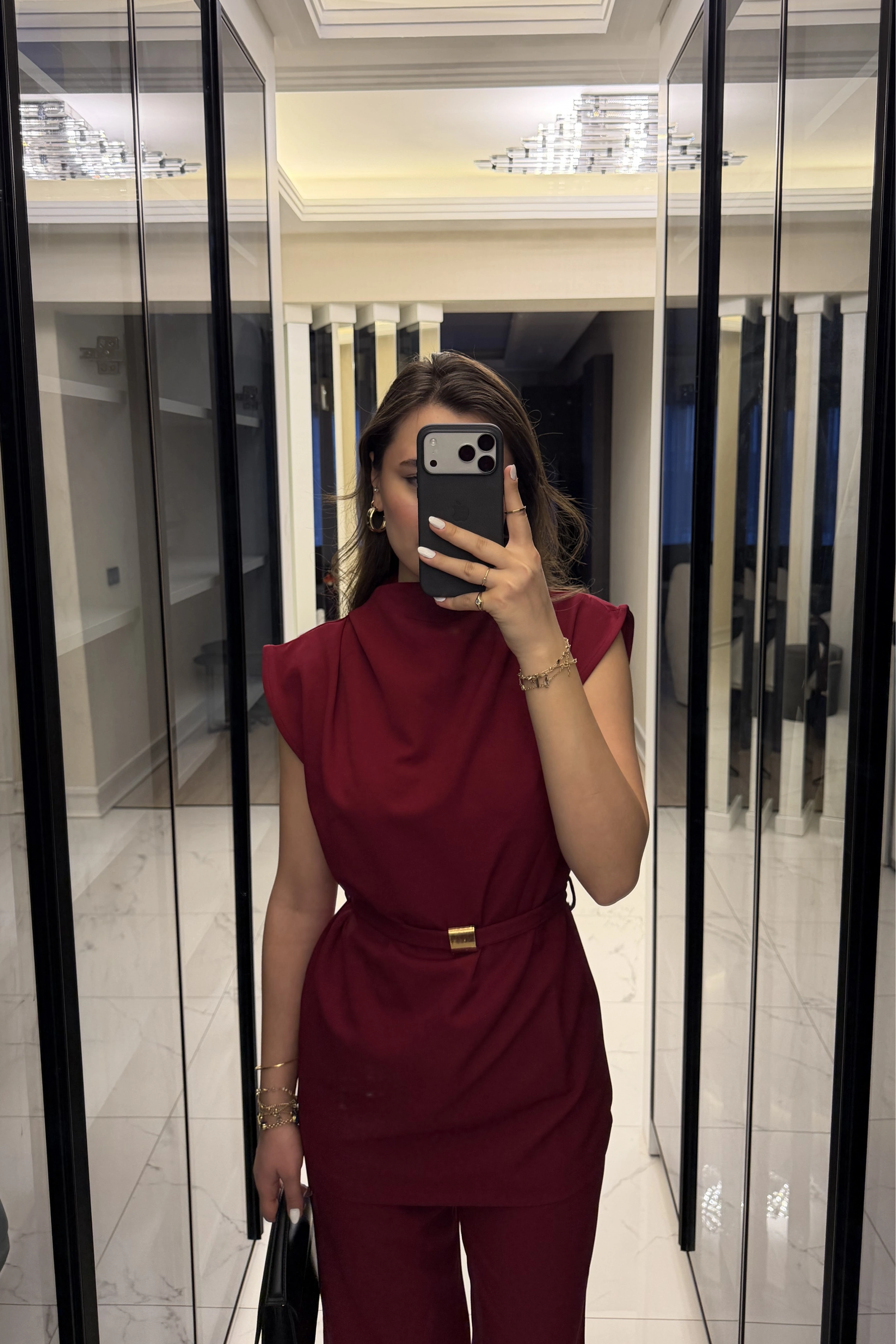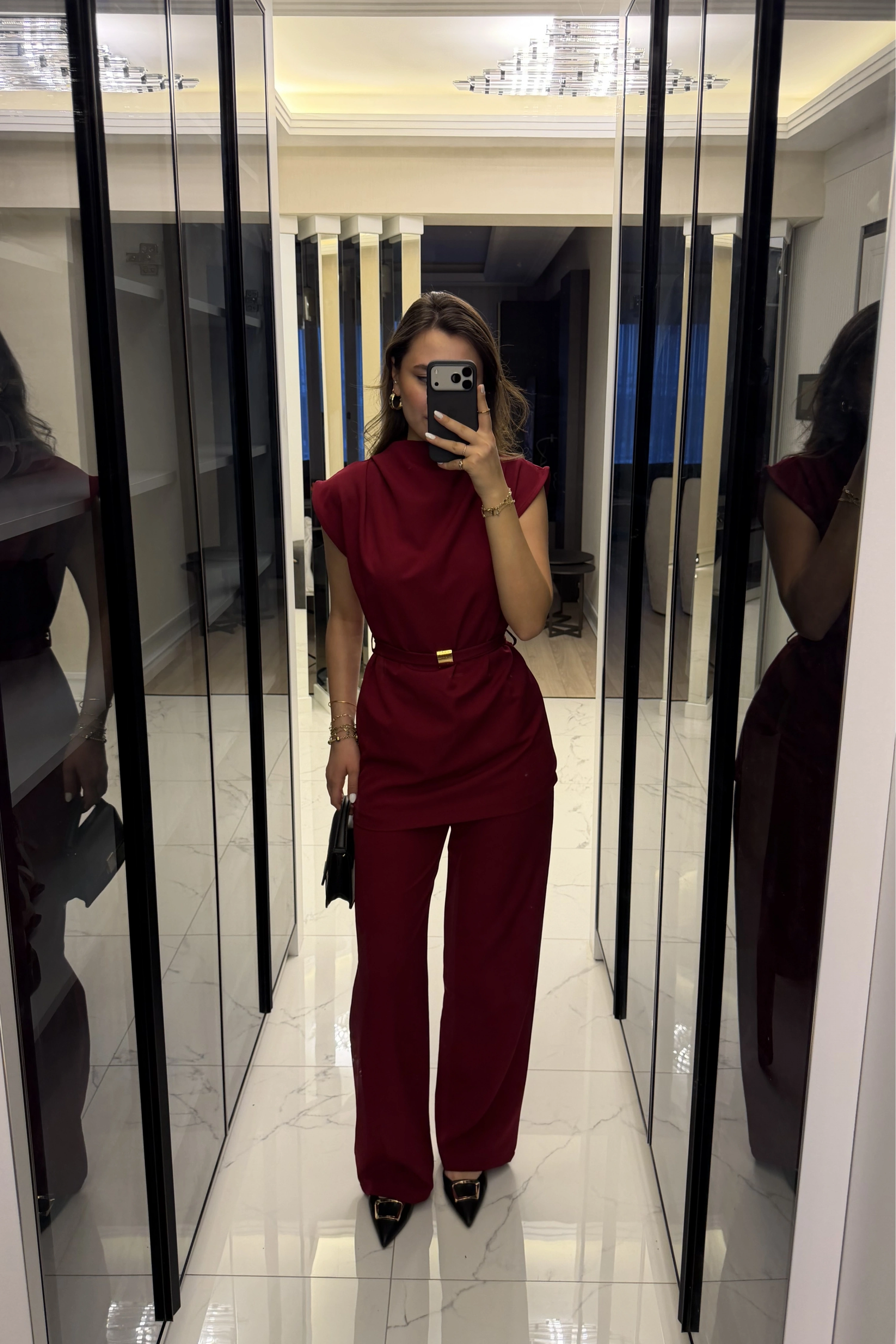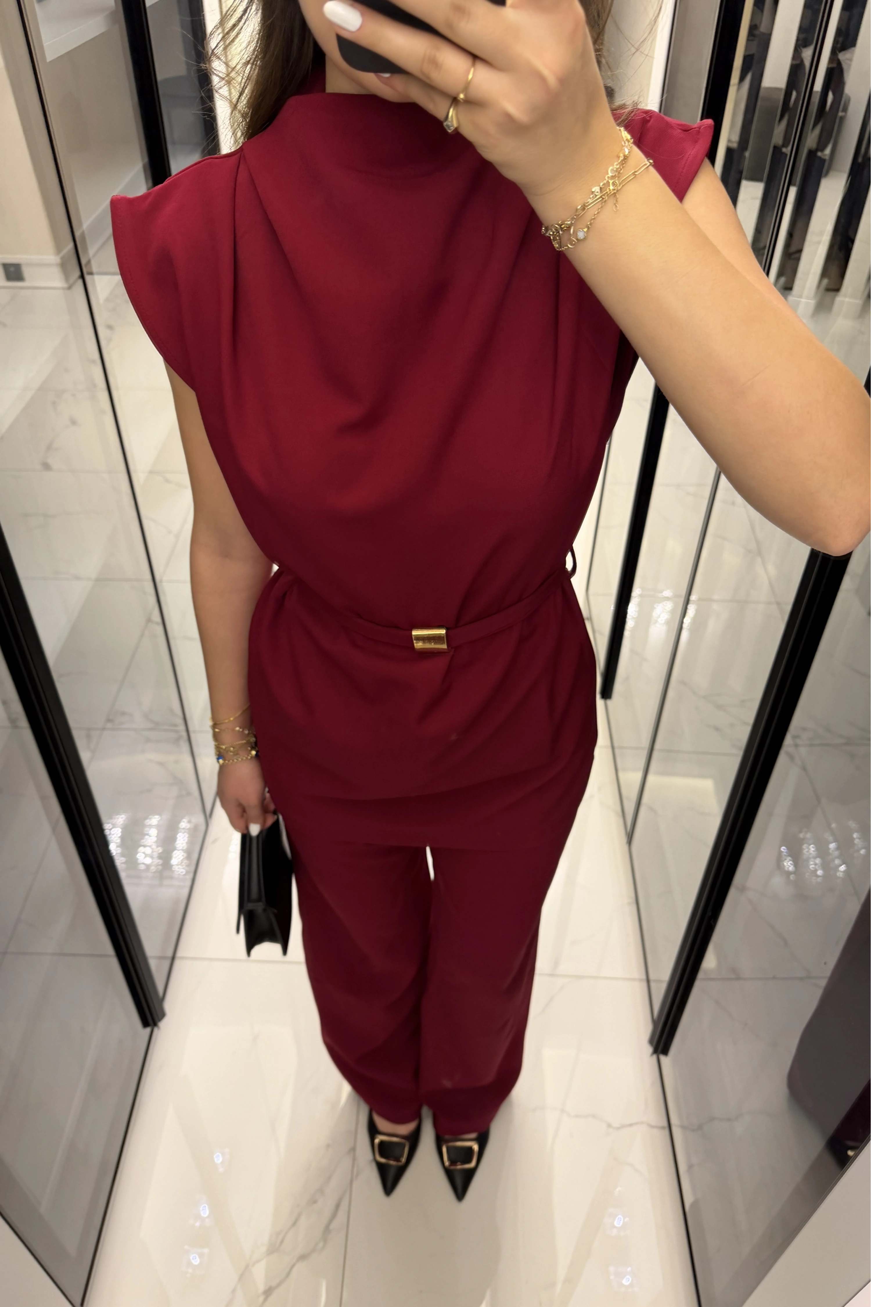 Bordo Broş Kuşaklı Vatkalı Takım