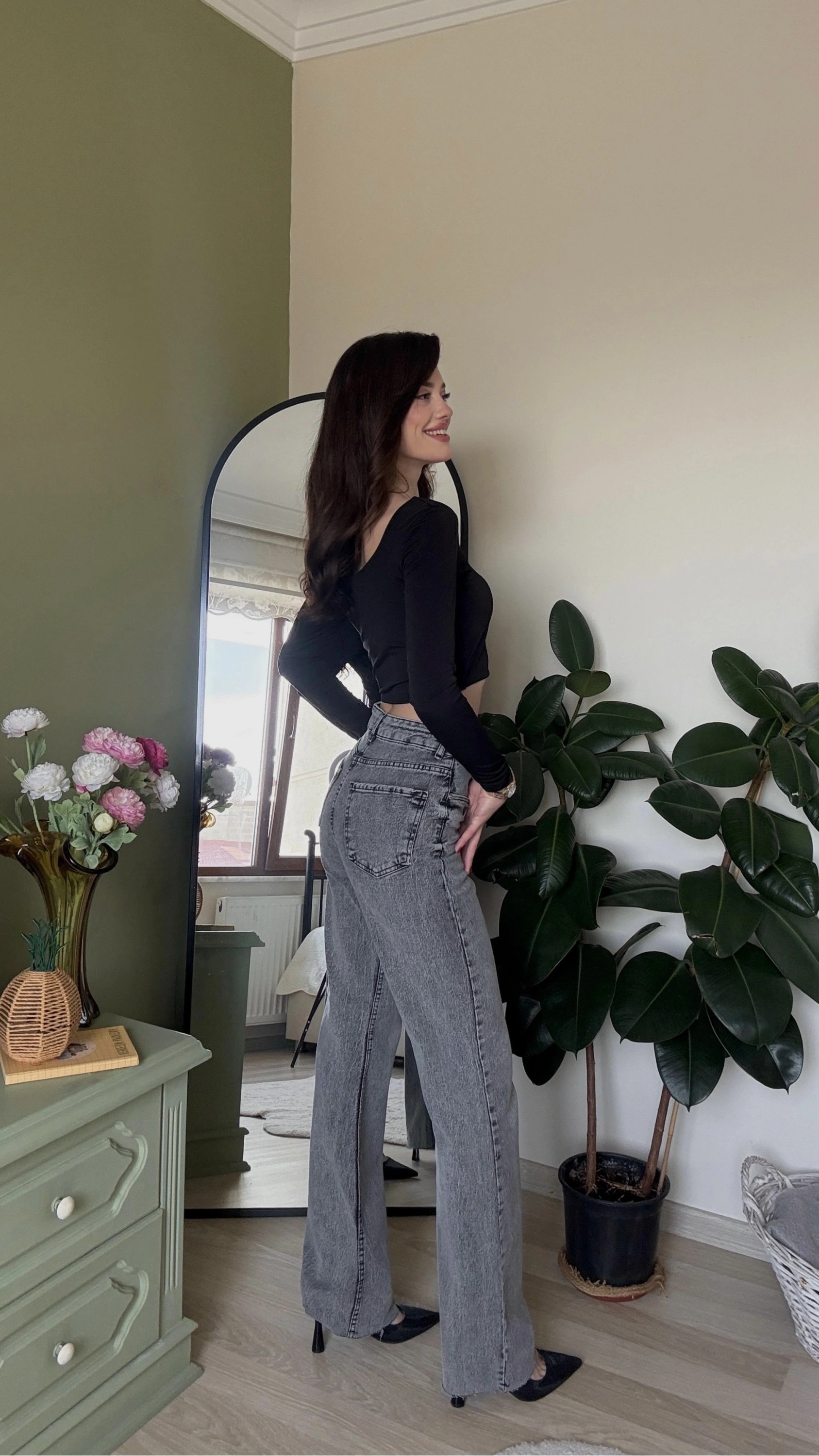 Siyah Fitilli Yüksek Bel Toparlayıcı Tayt