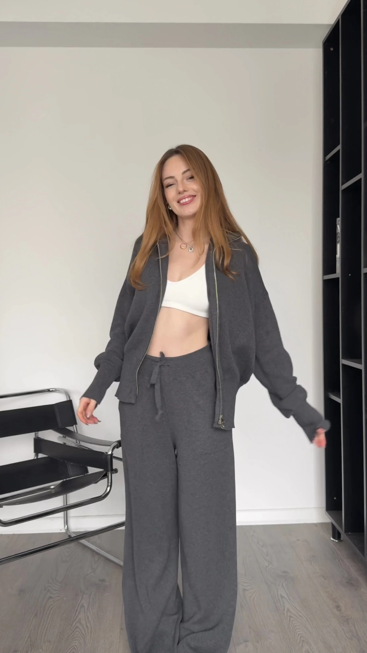 Genny Antrasit Çift Fermuarlı Triko Takım