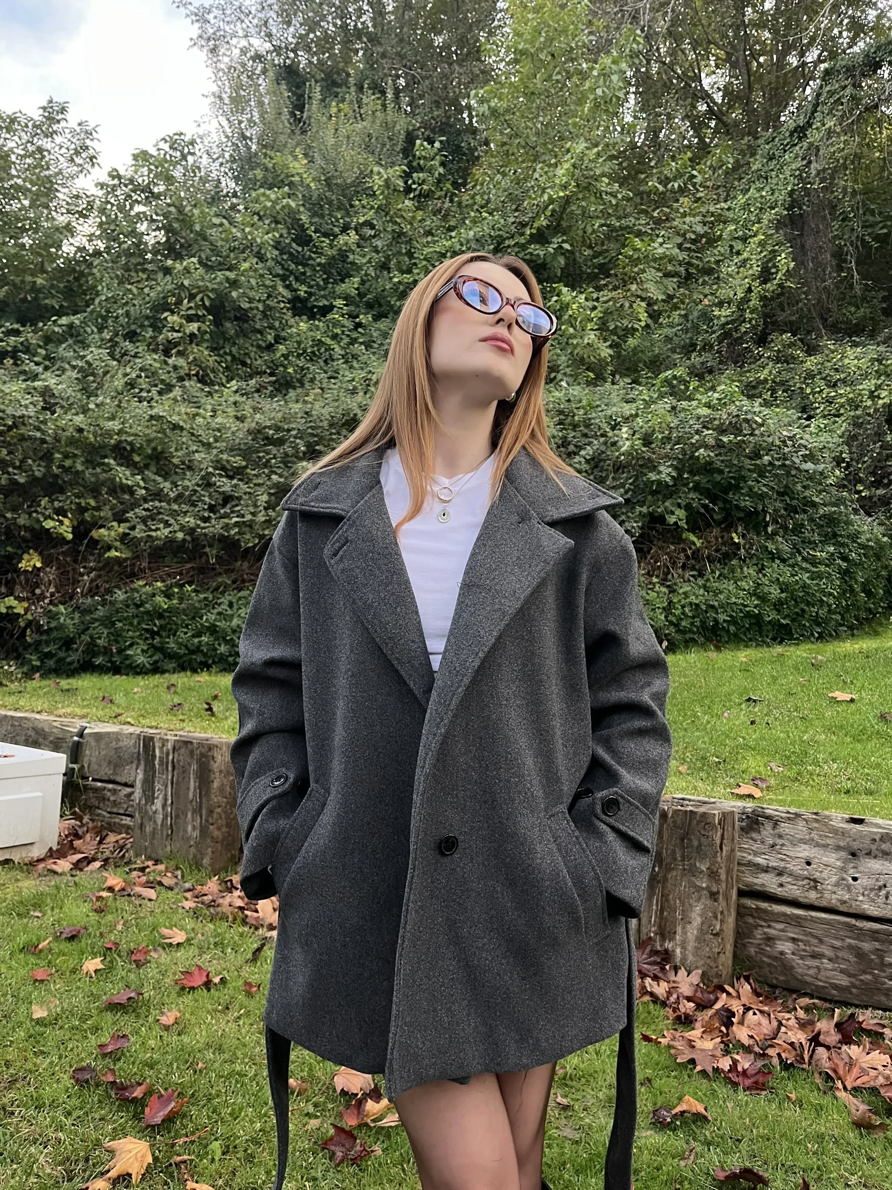 Gri Emma Kuşaklı Kaşe Kaban