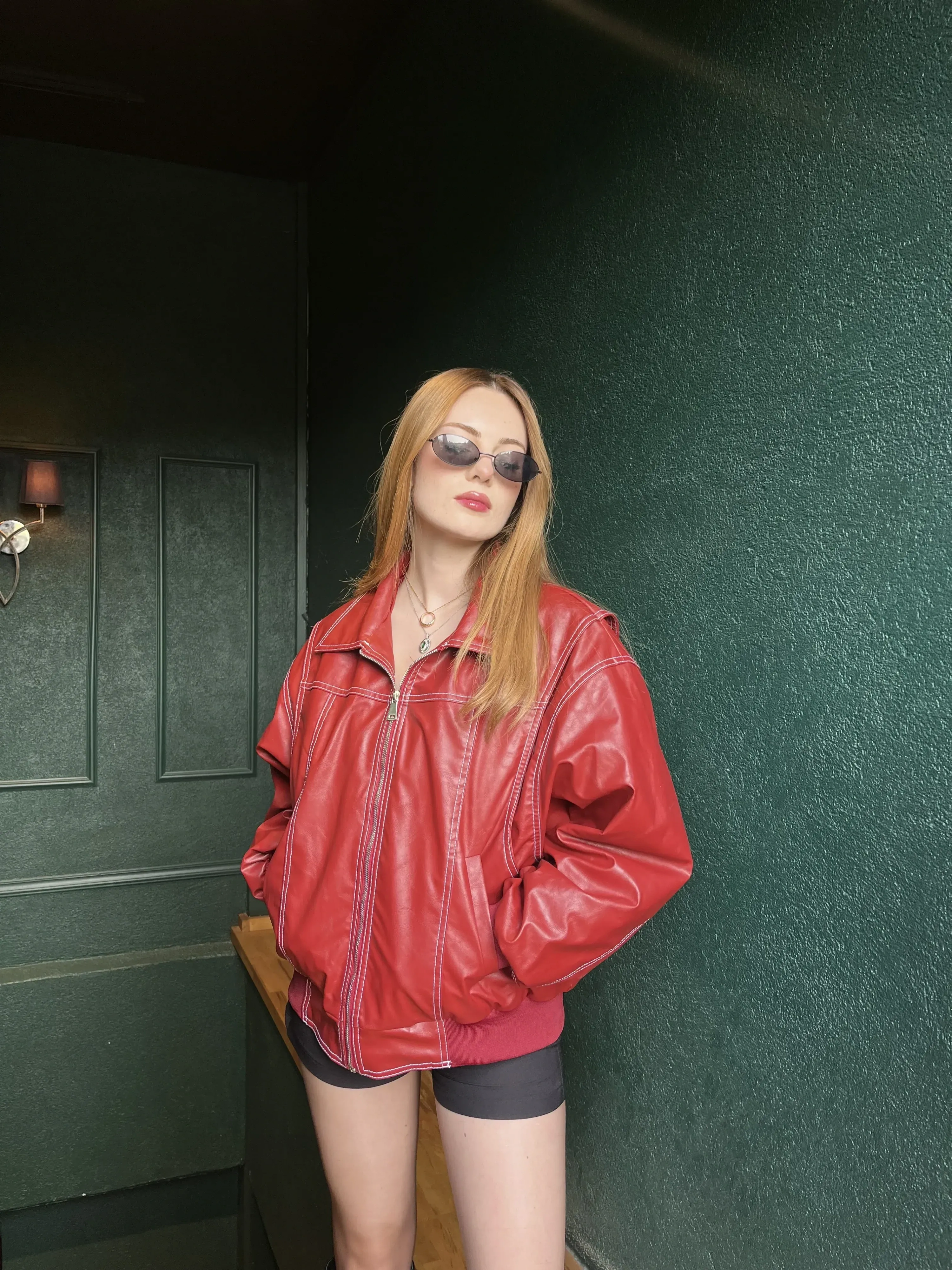 Kırmızı Amy Premium Dikiş Detaylı Deri Ceket