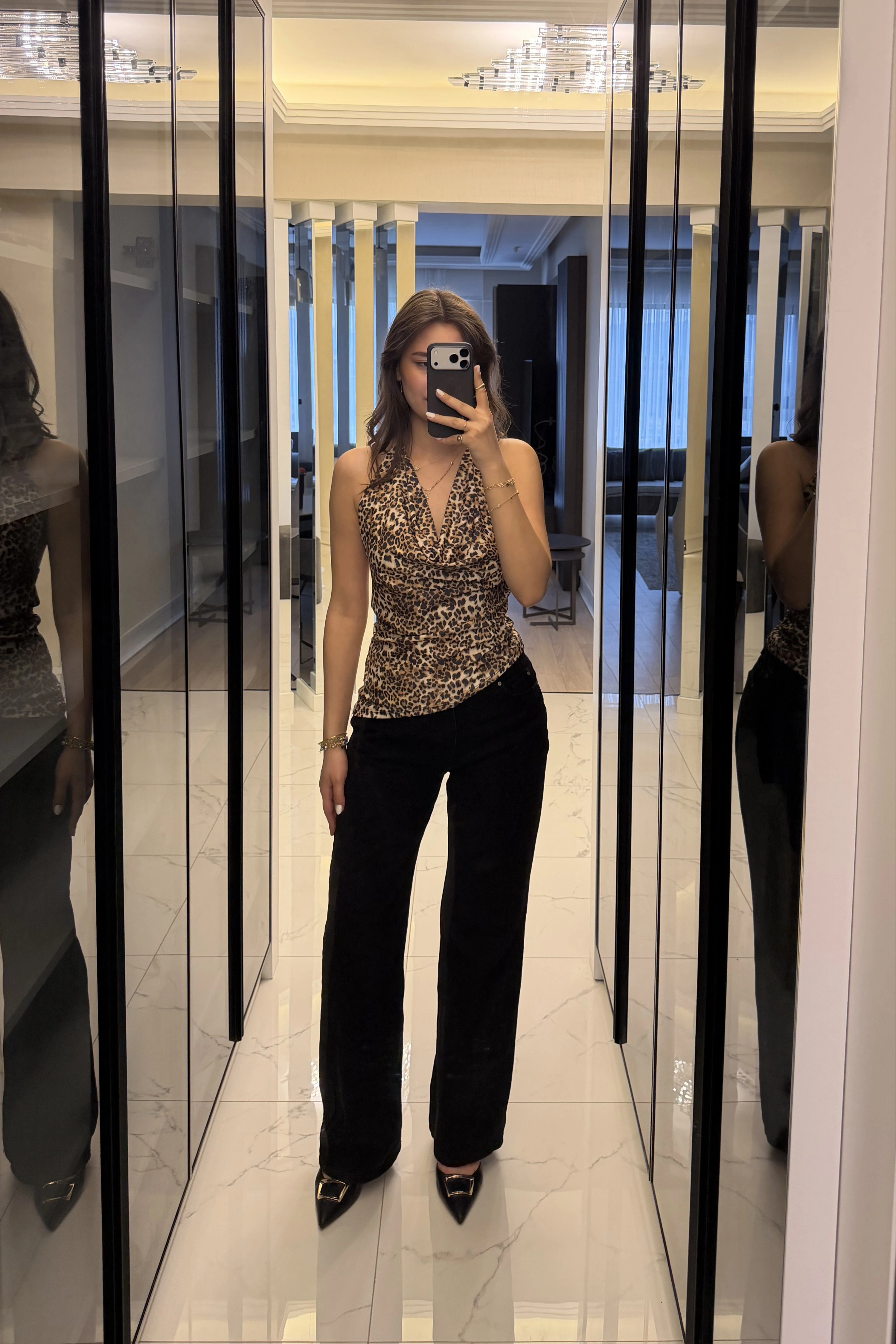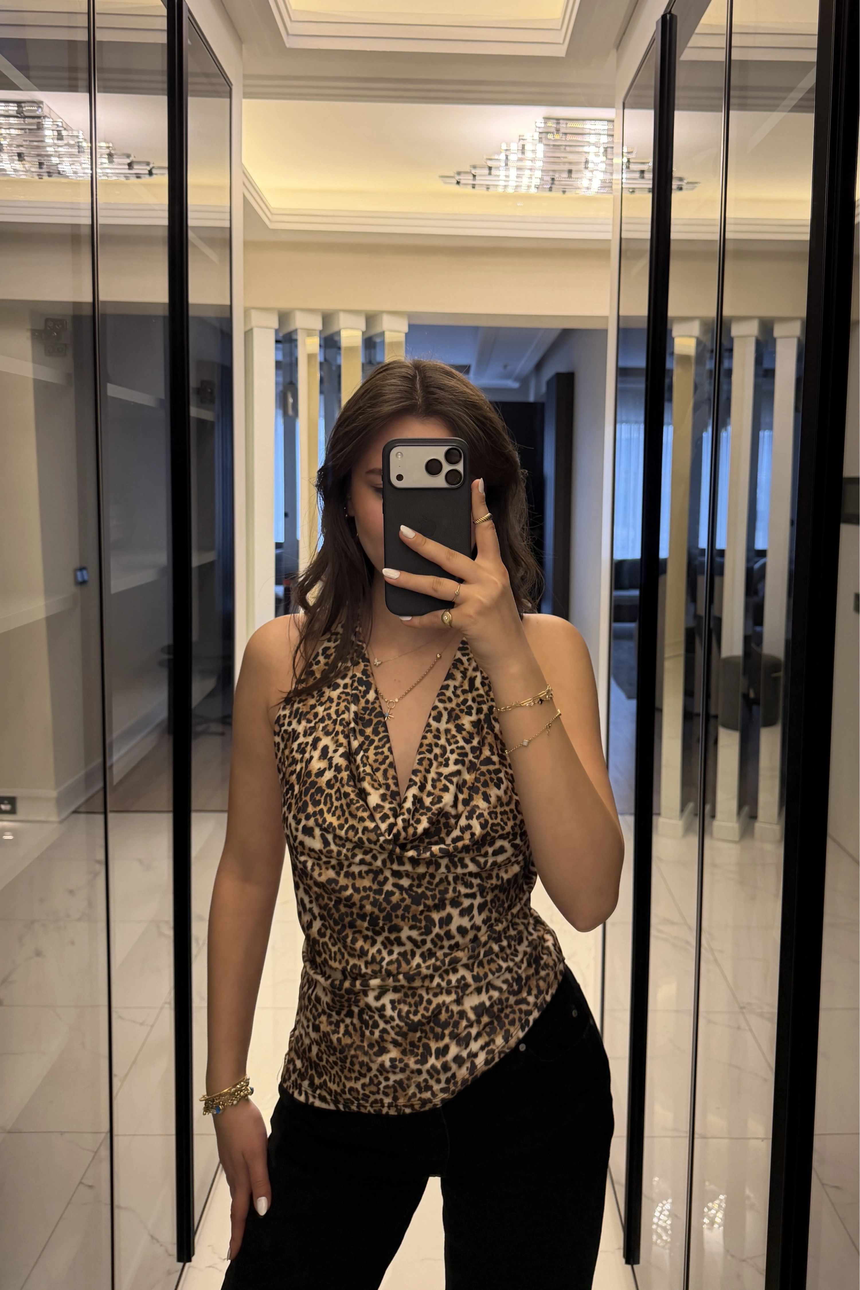 Leopar Aria Degaje Yakalı Bluz