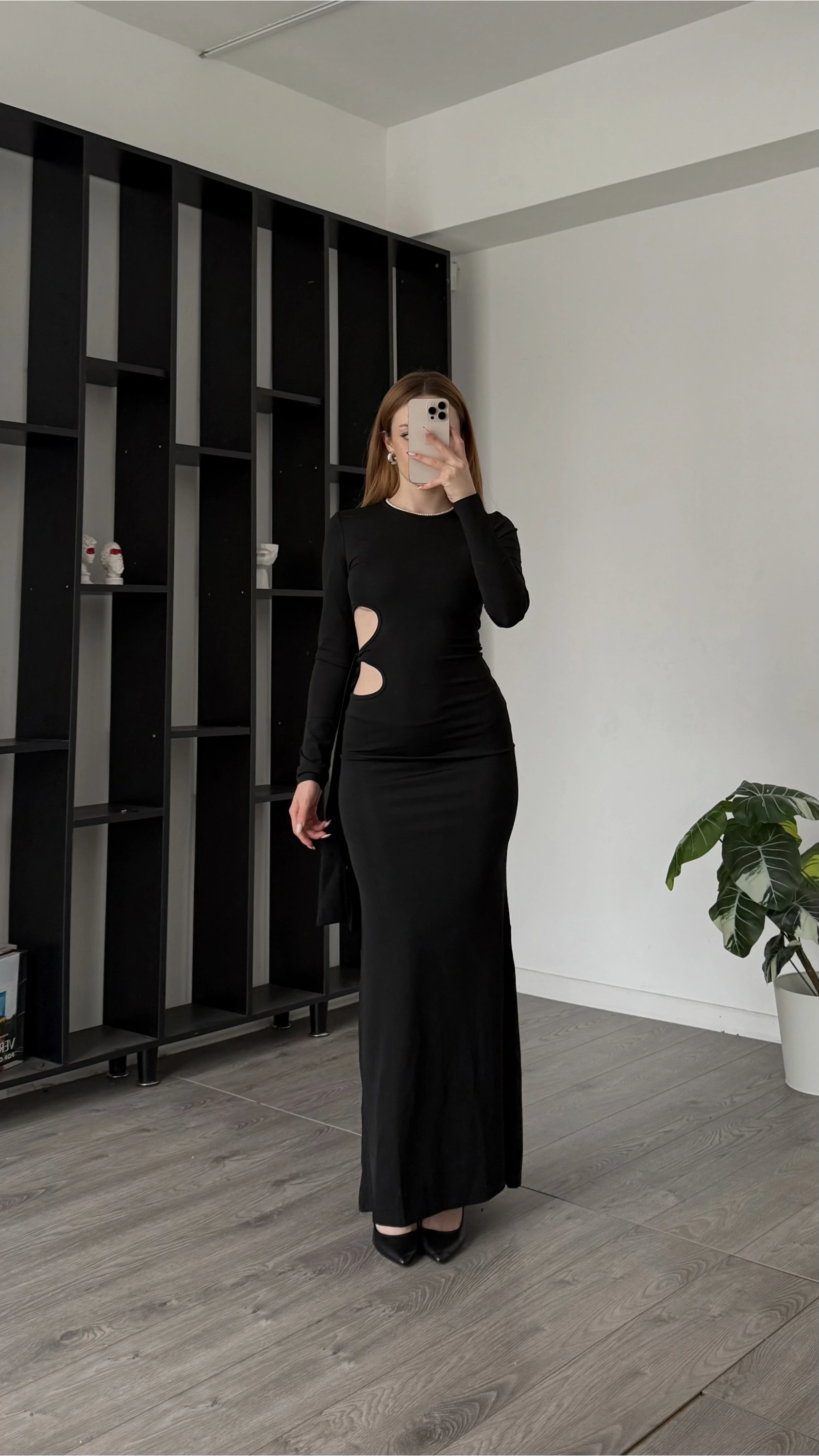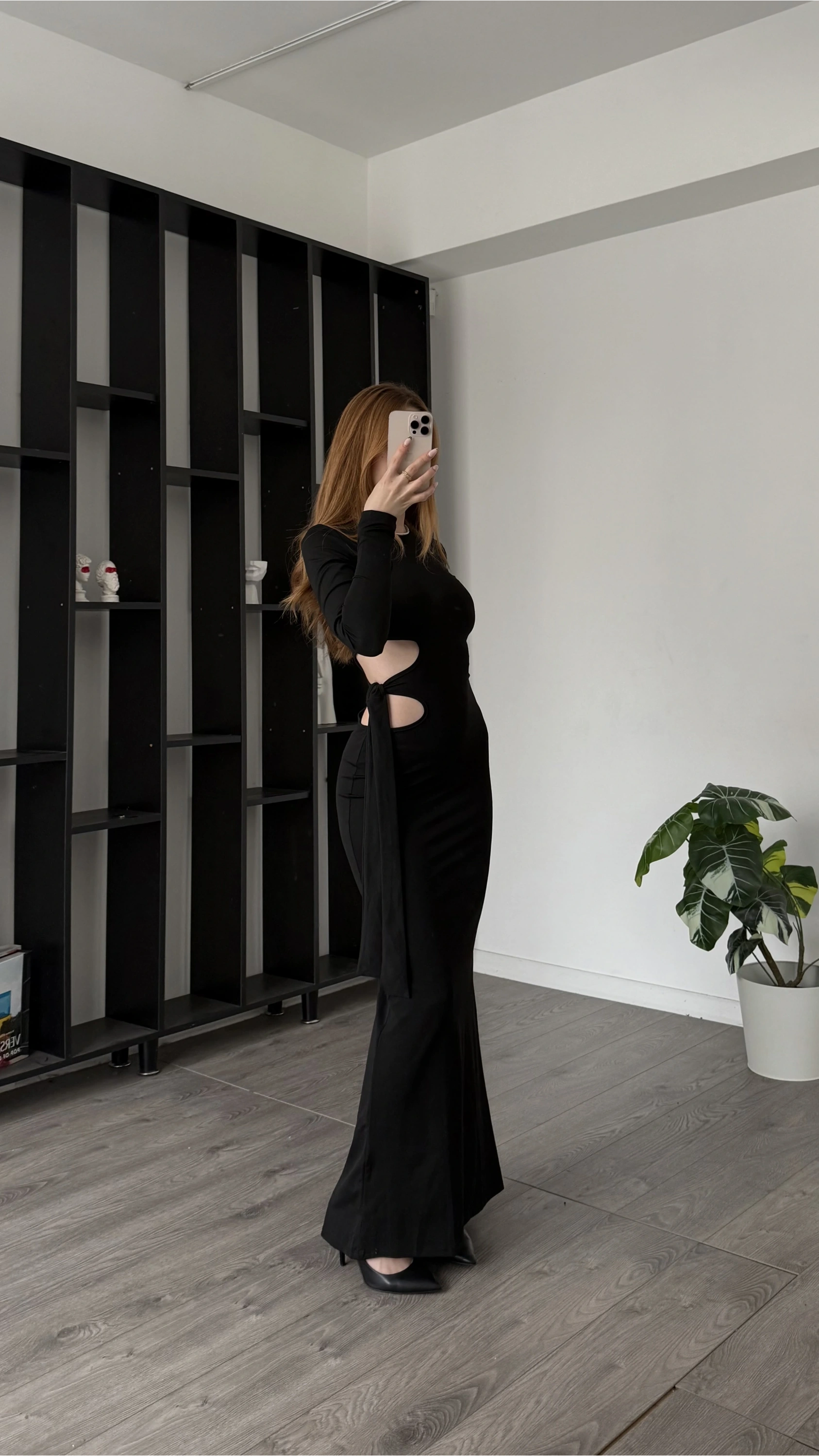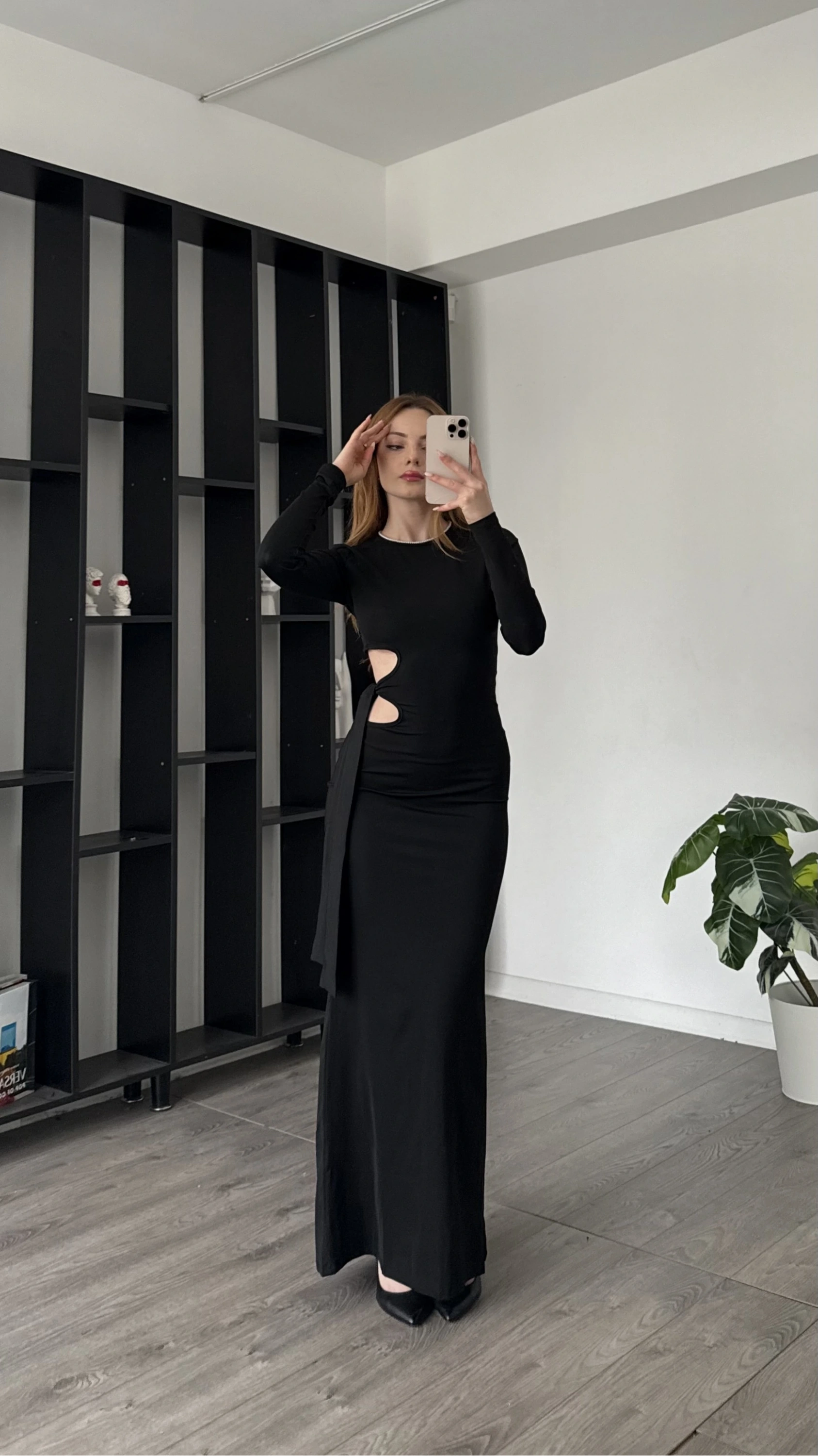 Lisa Siyah Bel Detaylı Maxi Elbise