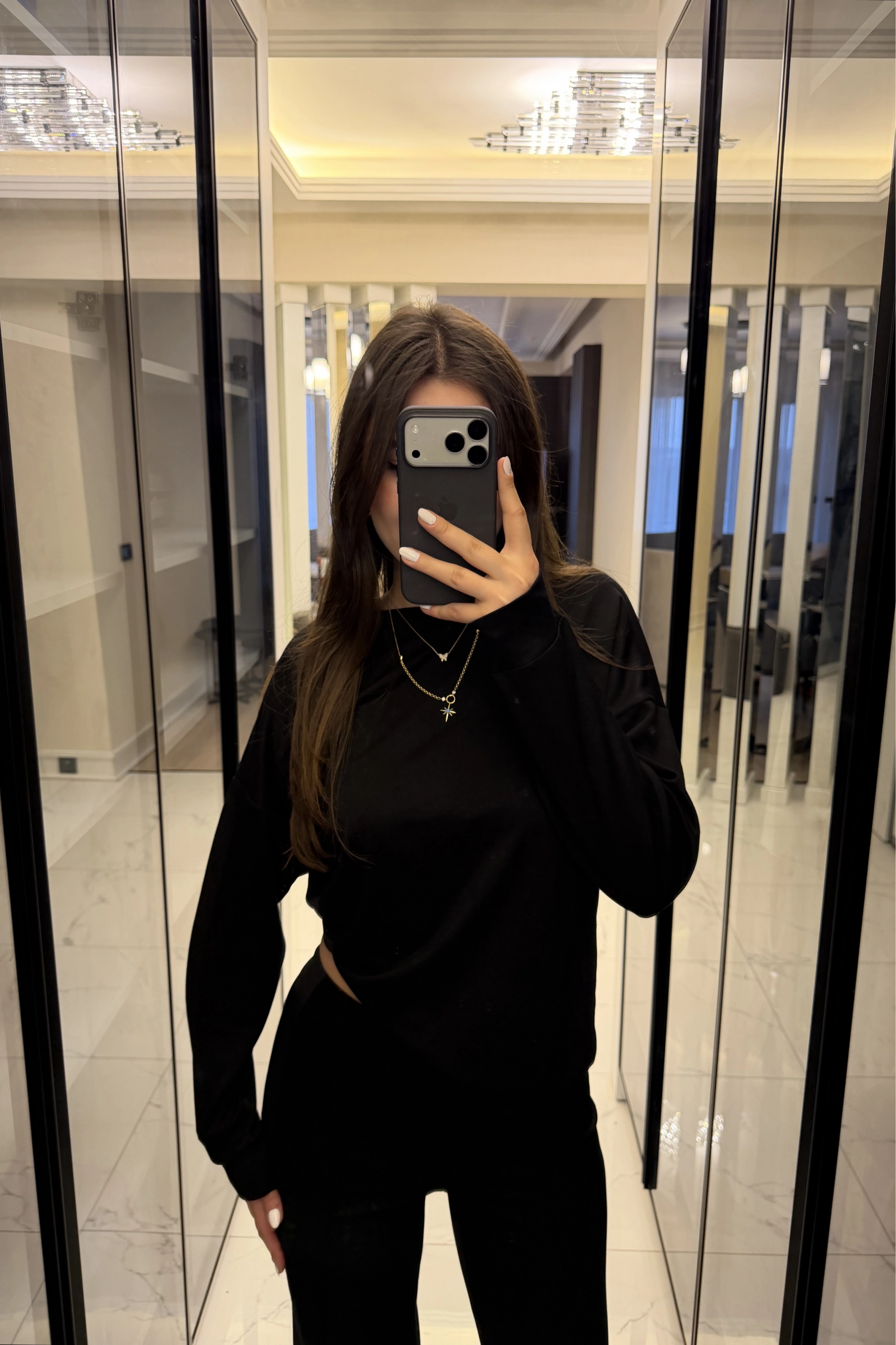 Siyah Oys Muadil Yüksek Bel Toparlayıcı Tayt