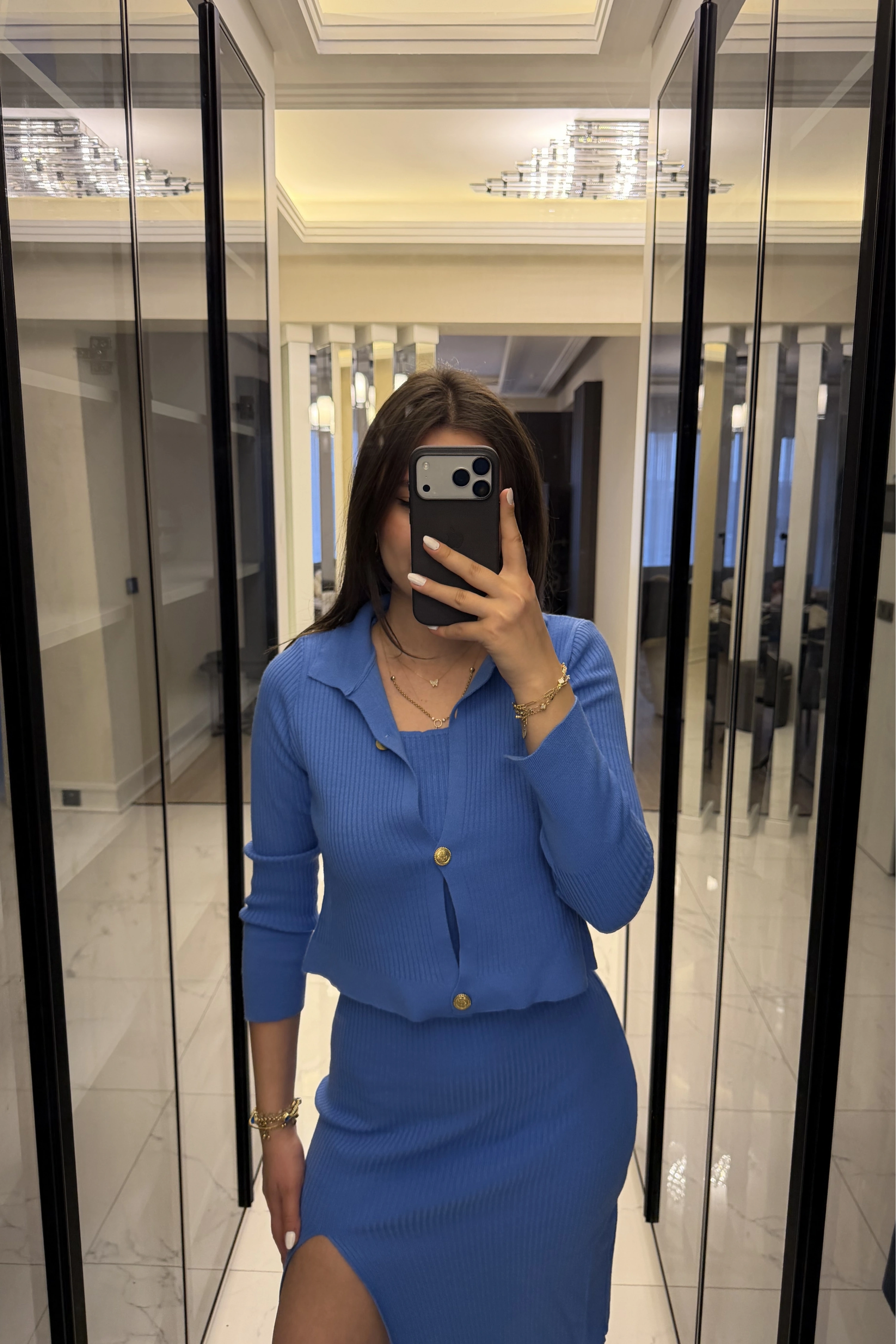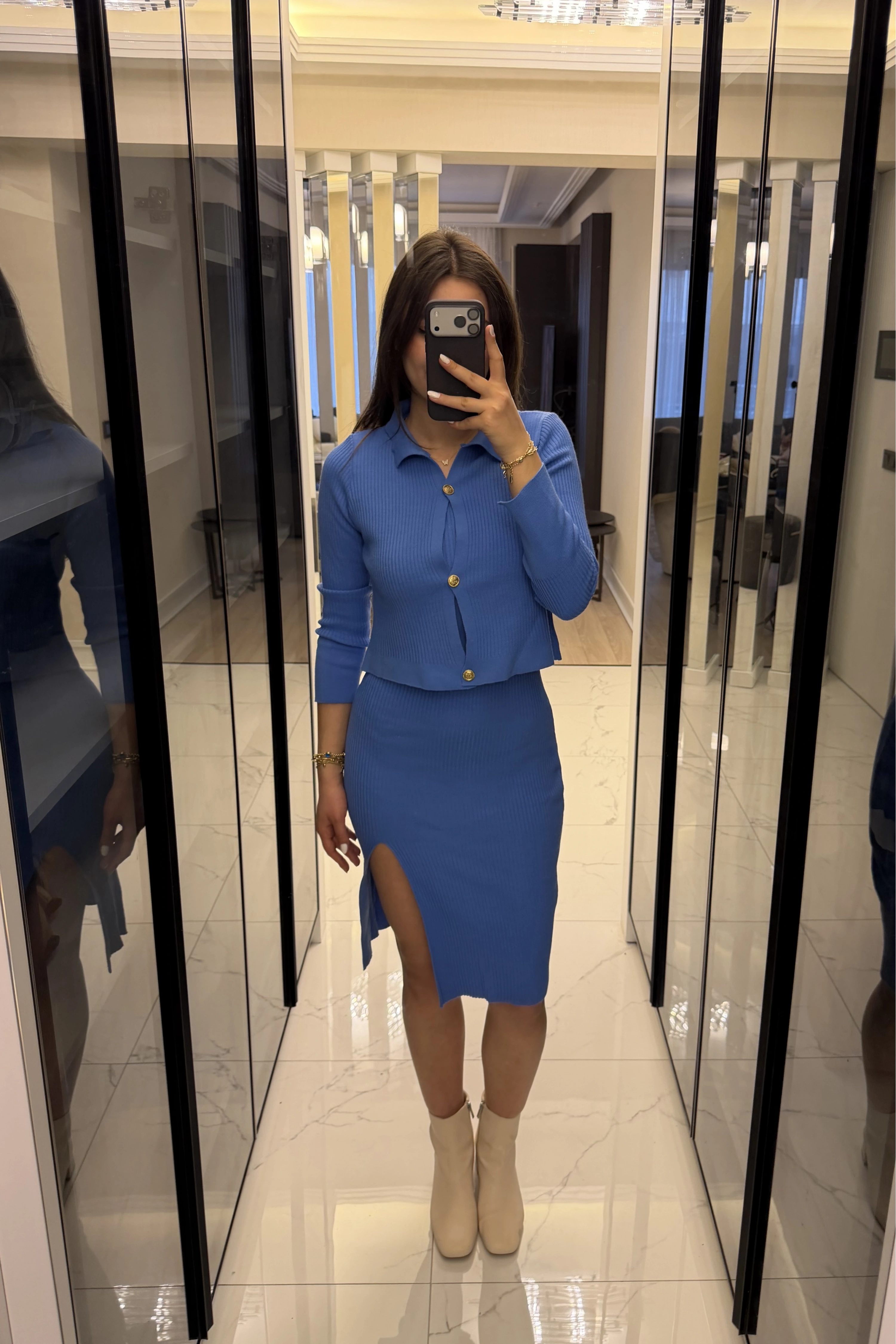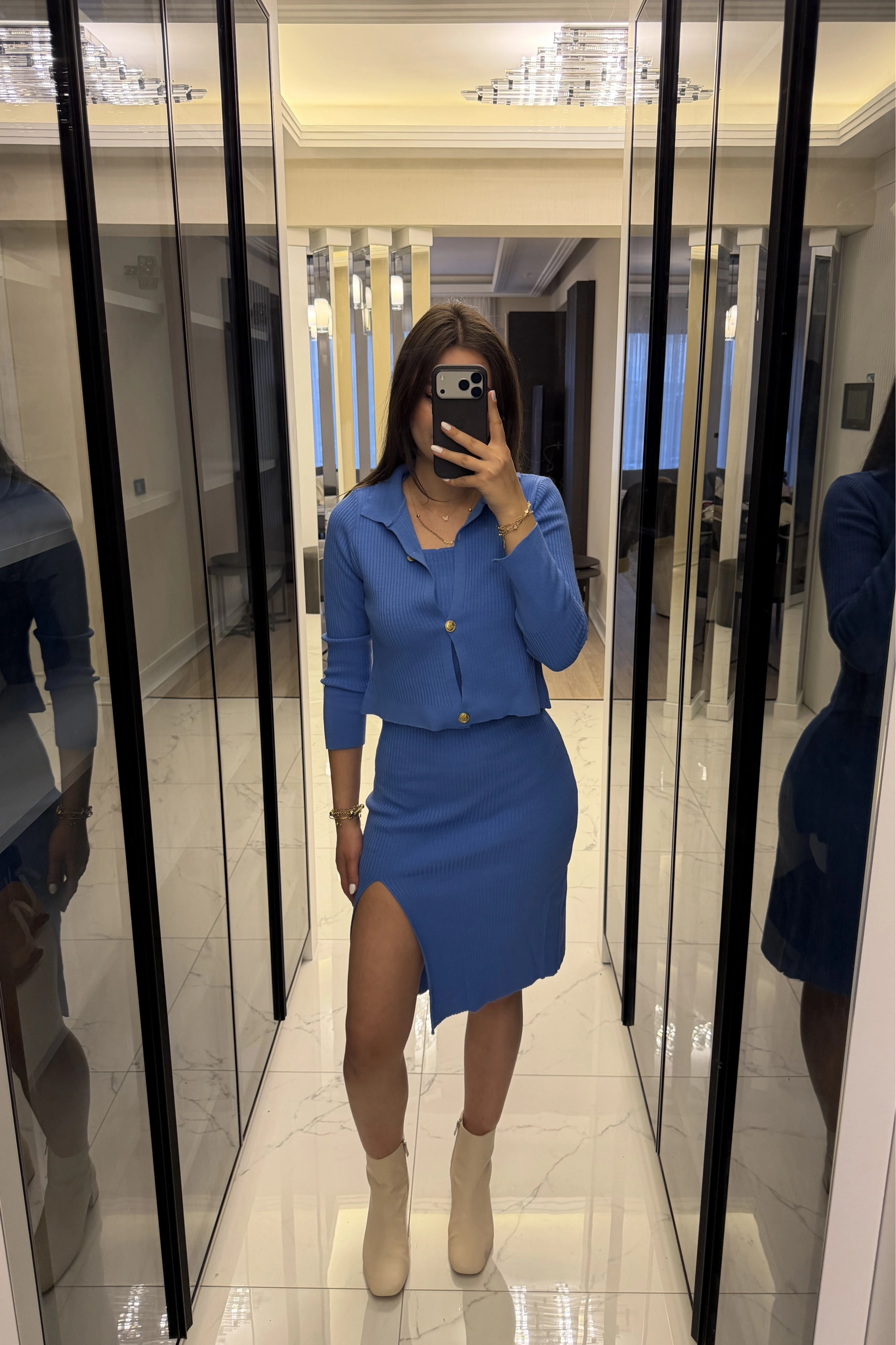 Mavi Renly Hırka Elbise Triko Takım