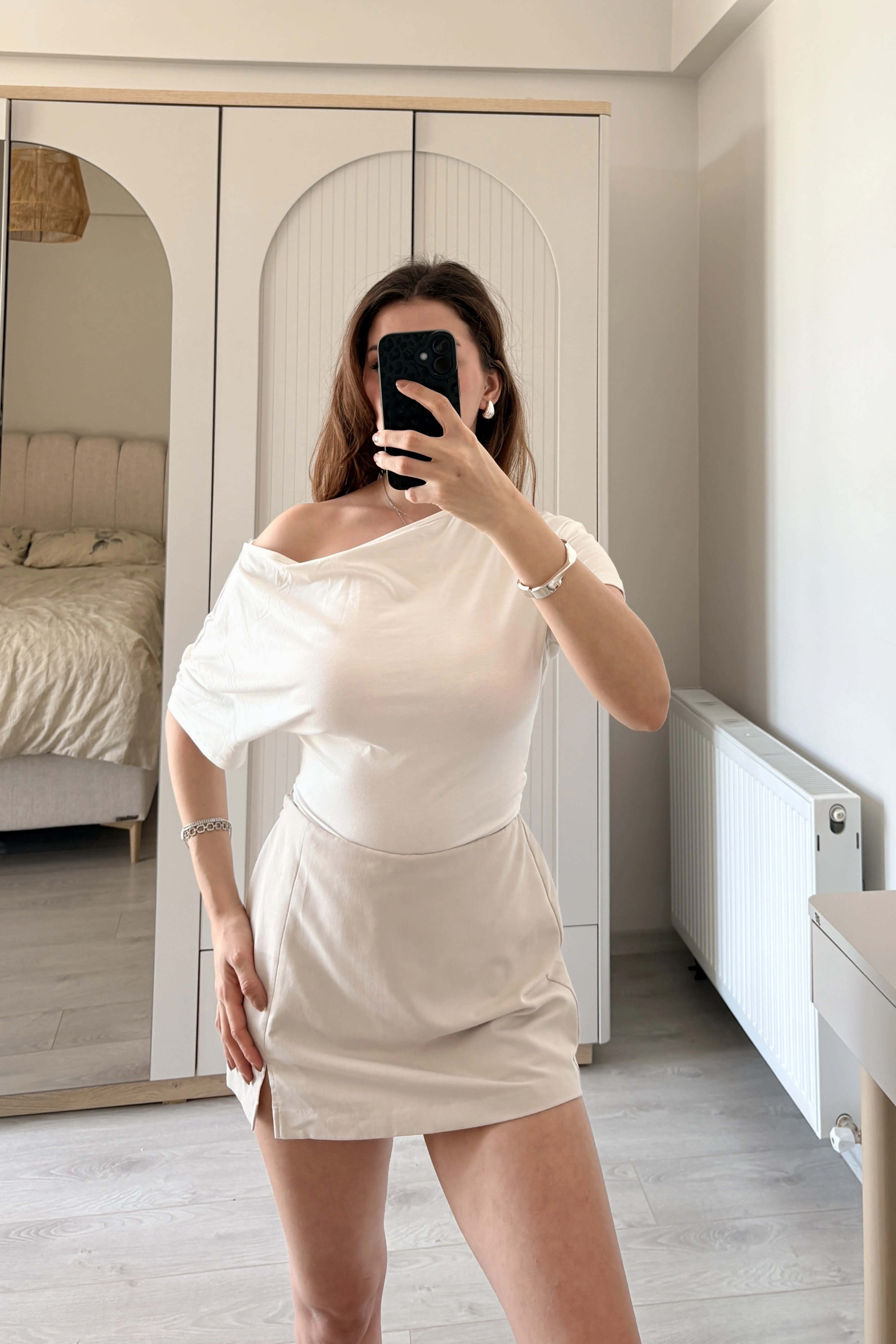Miela Beyaz Yaka Detaylı 2 Kullanımlı Bluz
