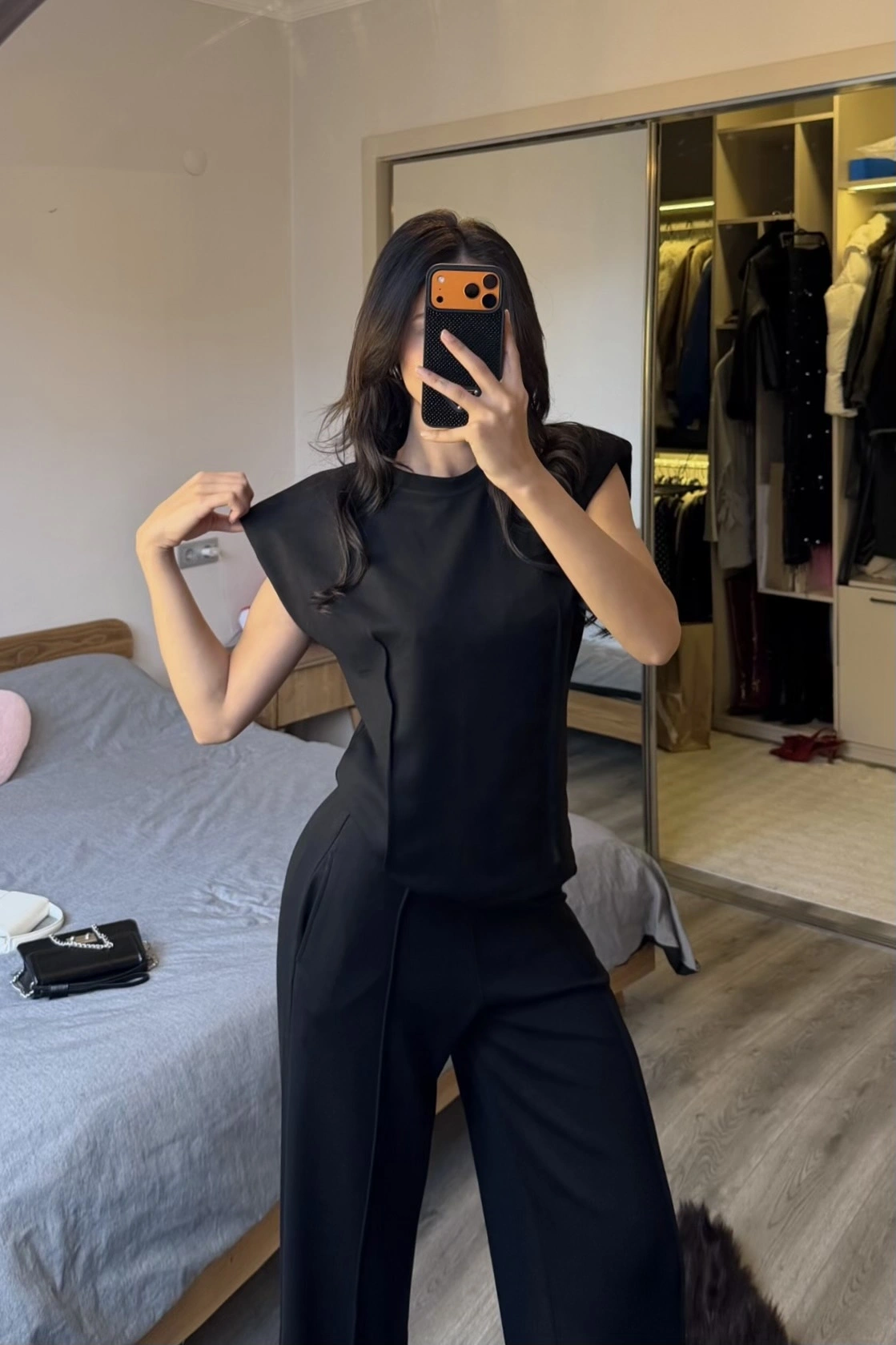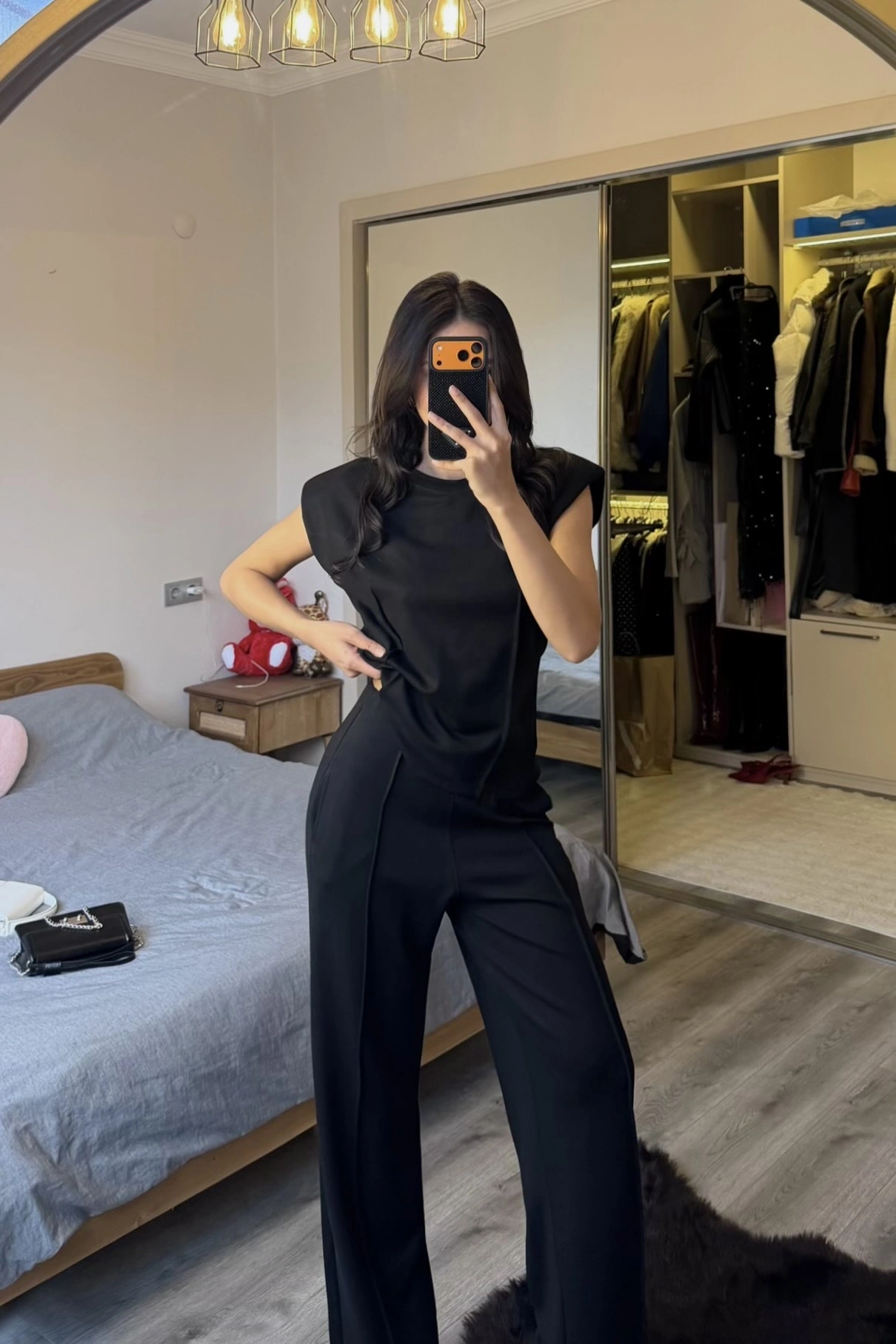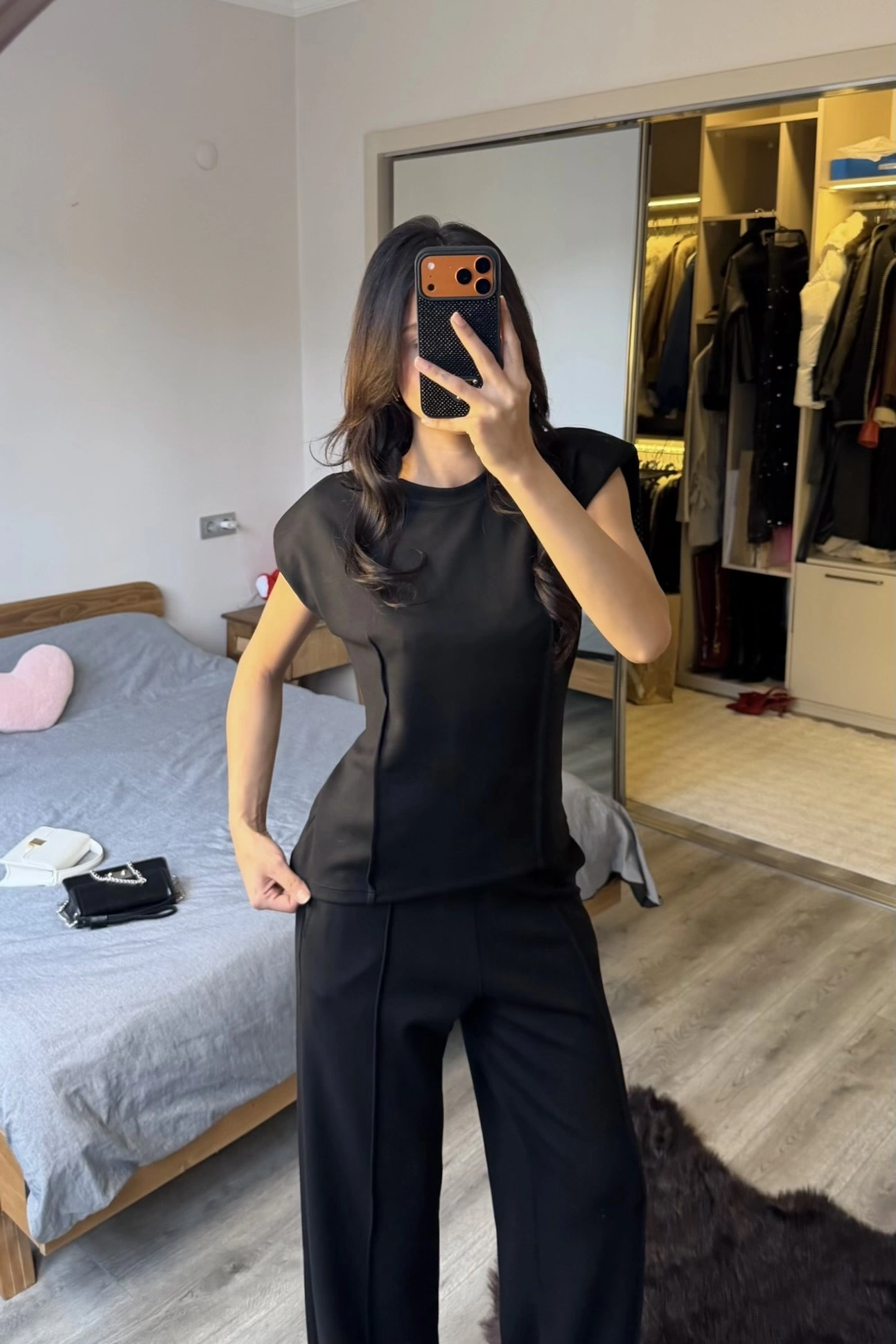 Siyah Mely Vatkalı Dikiş Detay Takım