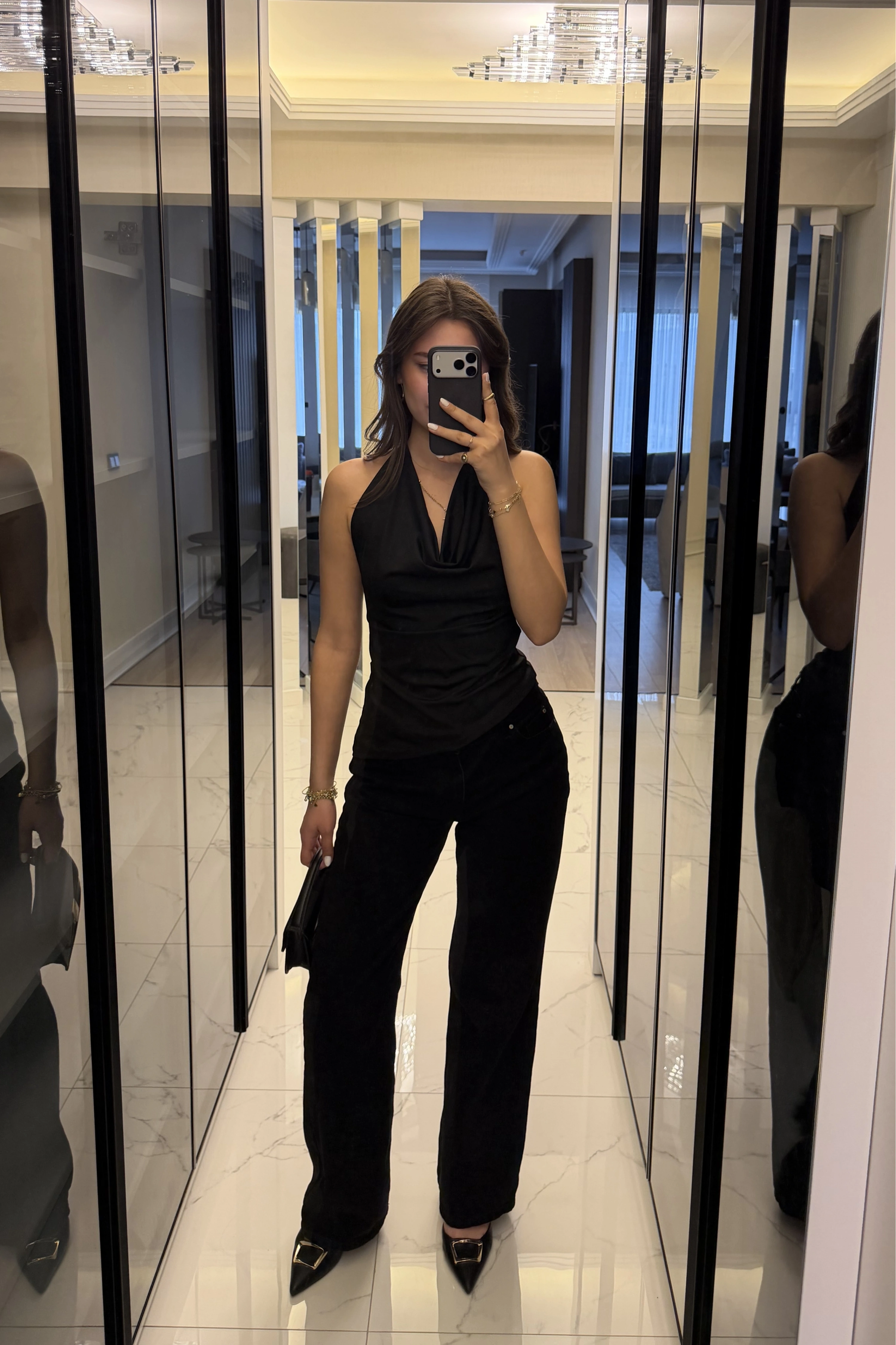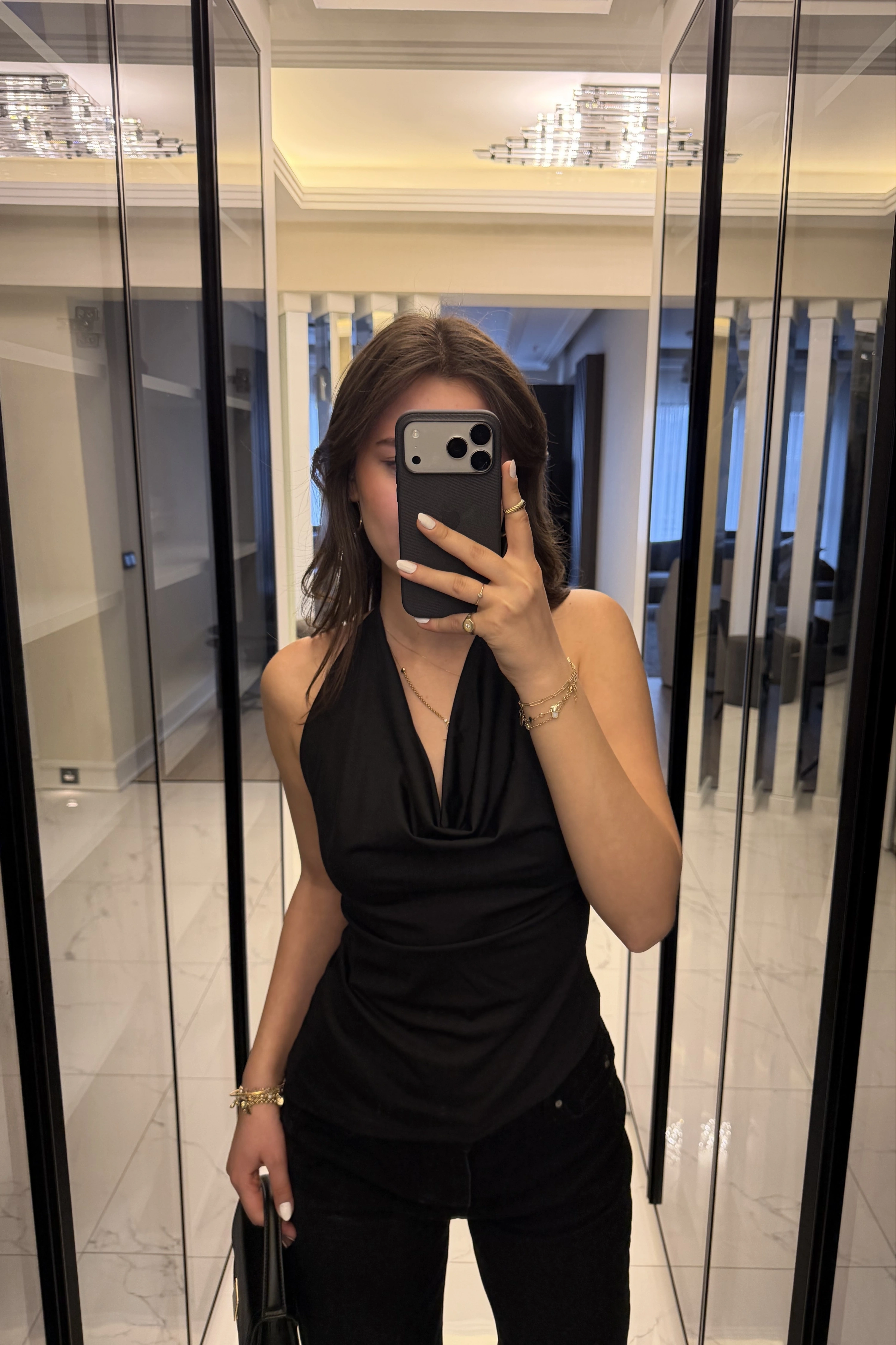 Siyah Aria Degaje Yakalı Bluz