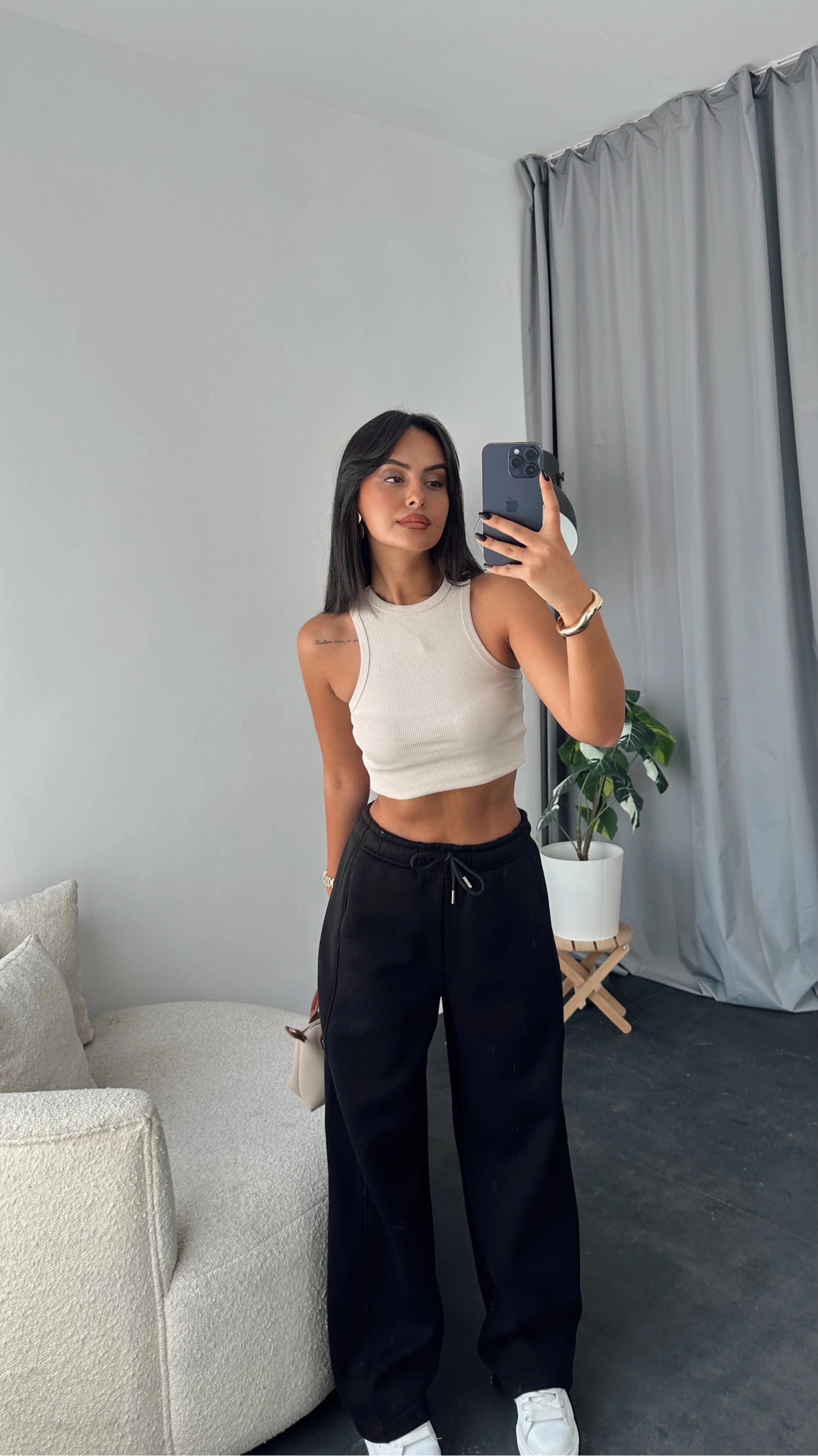 Krem Baggy Eşofman Altı