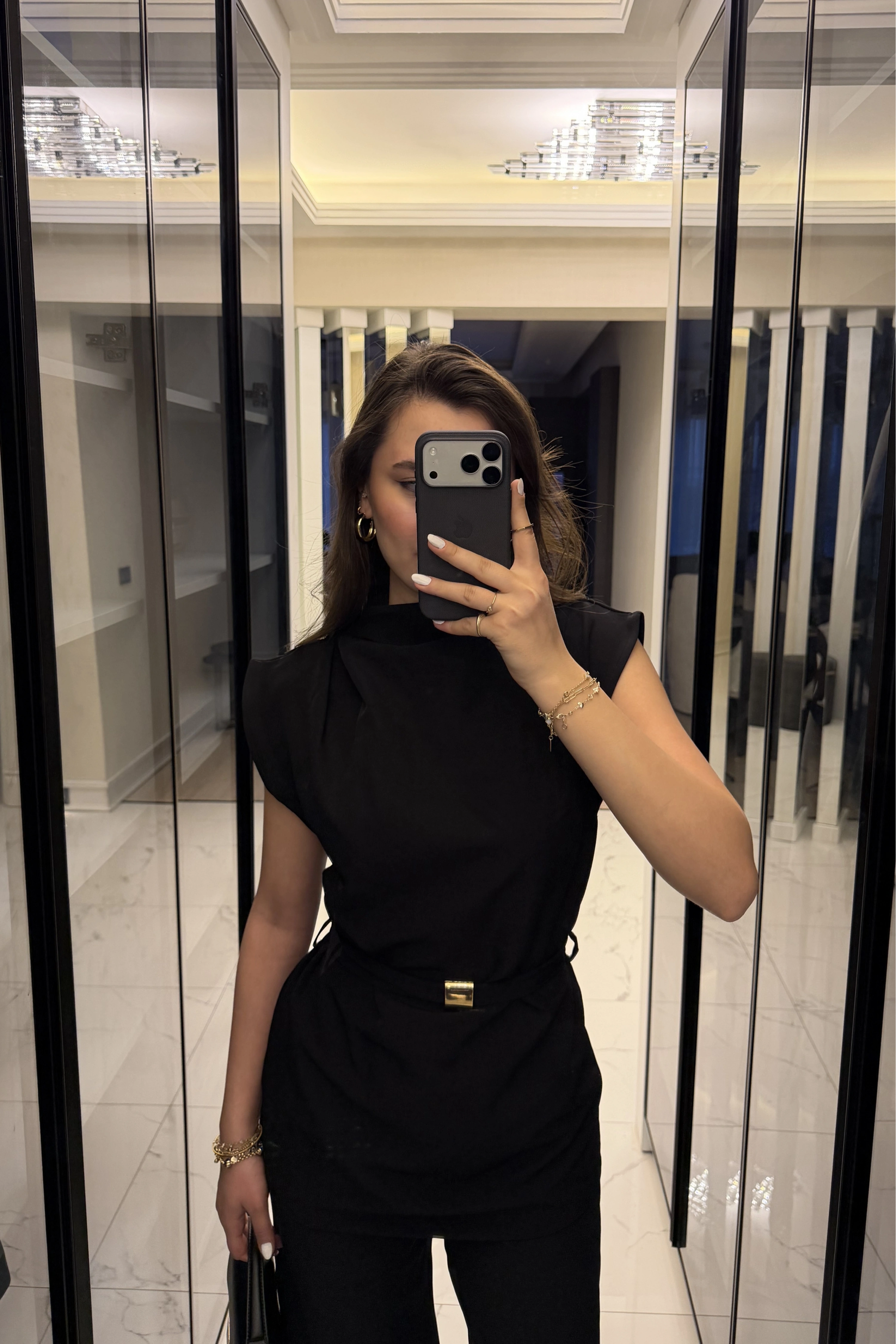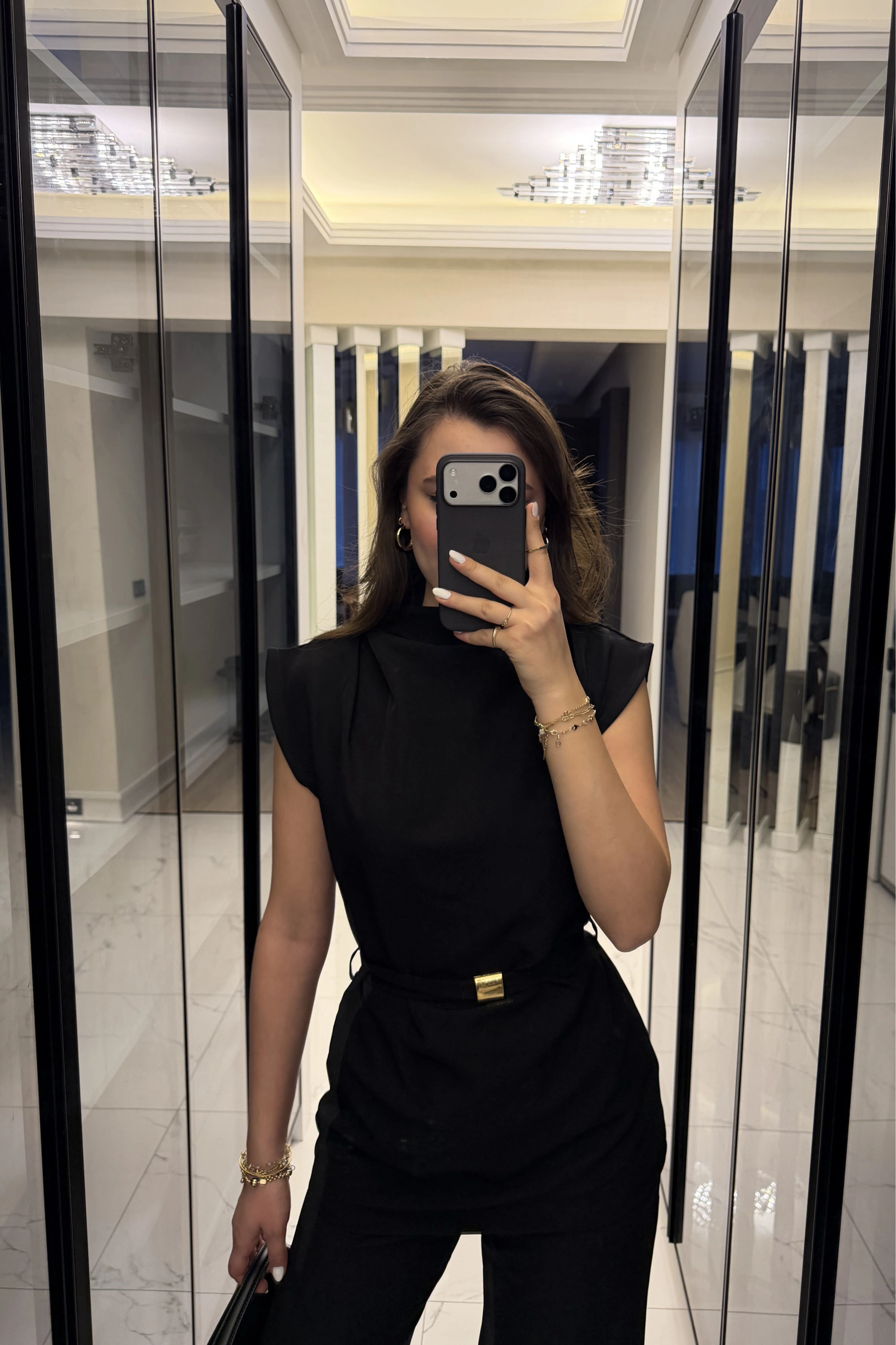 Siyah Oys Muadil Yüksek Bel Toparlayıcı Tayt