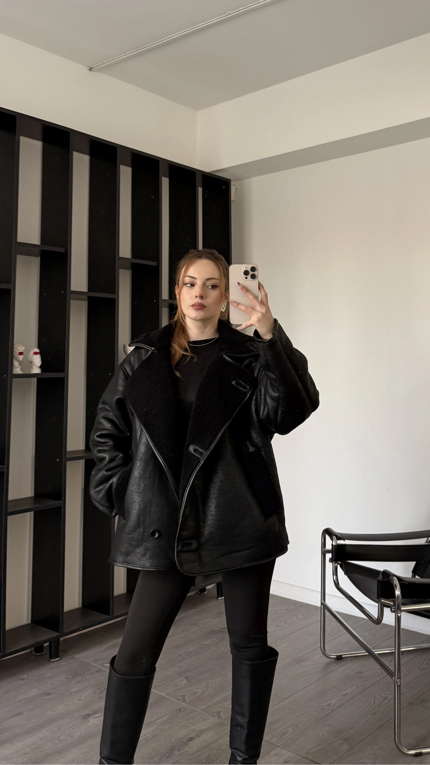 Siyah Oys Muadil Yüksek Bel Toparlayıcı Tayt