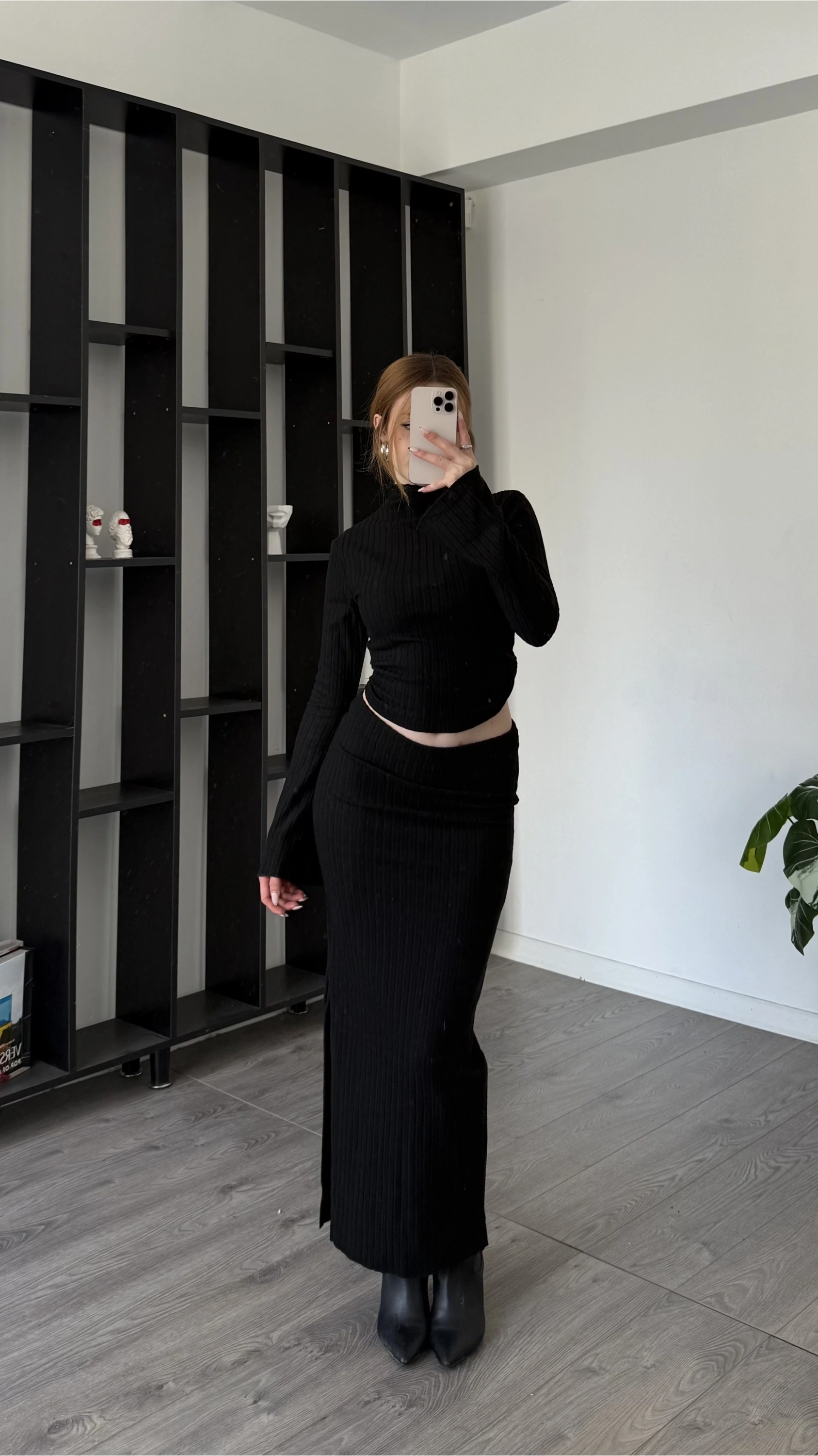 Siyah Oys Muadil Yüksek Bel Toparlayıcı Tayt