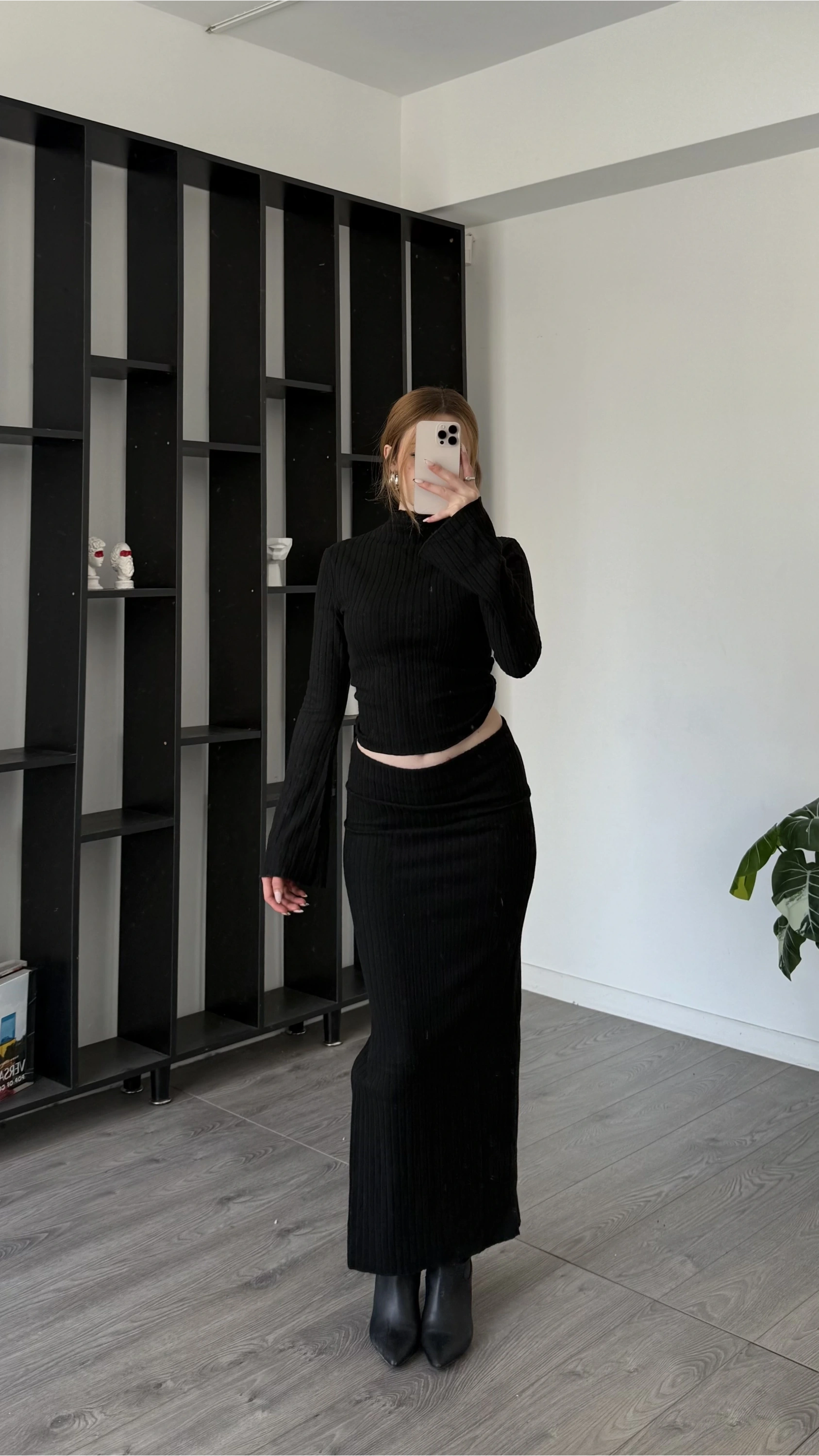 Siyah Fitilli Yüksek Bel Toparlayıcı Tayt