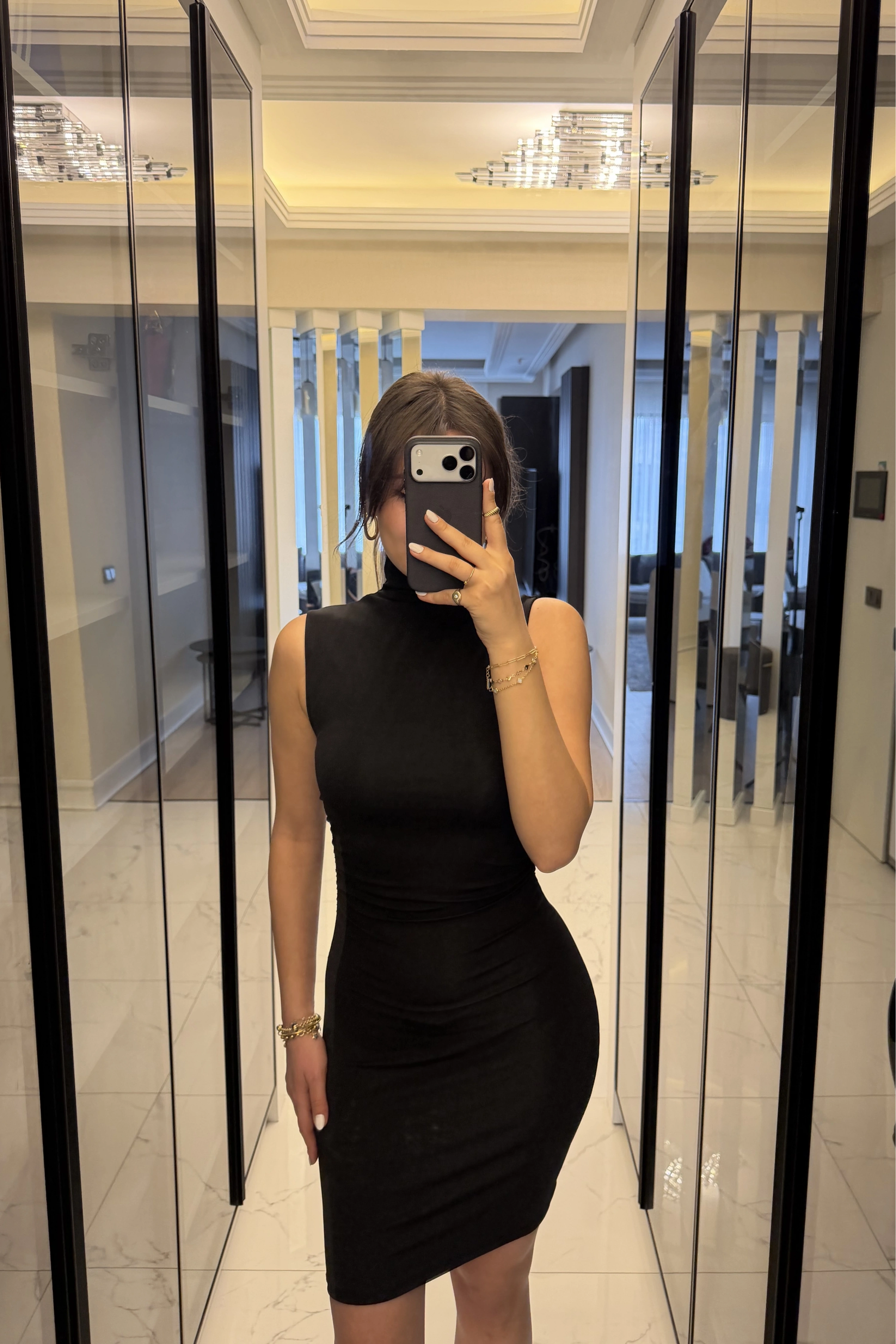 Siyah Eloise Balıkçı Yaka Kolsuz Elbise