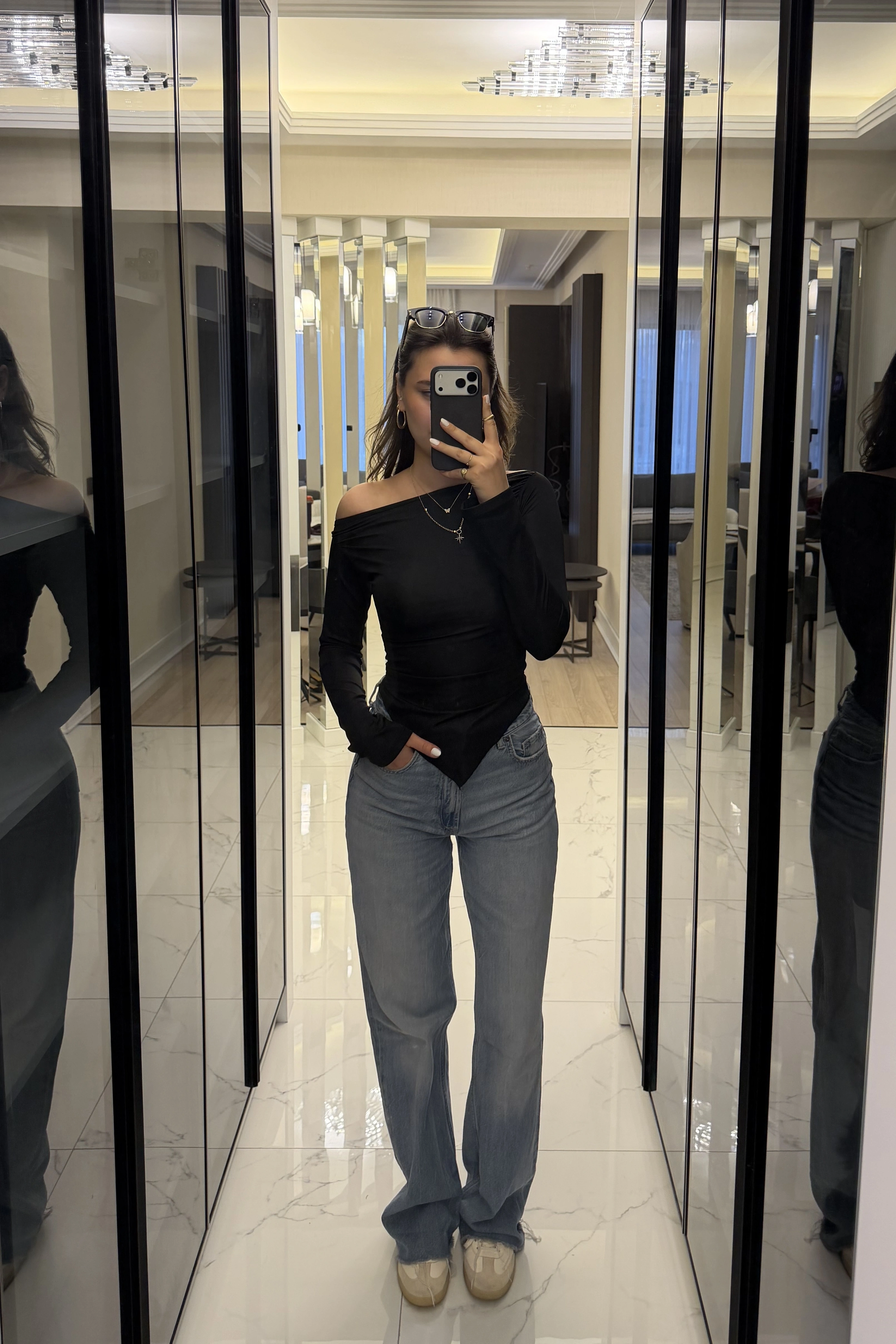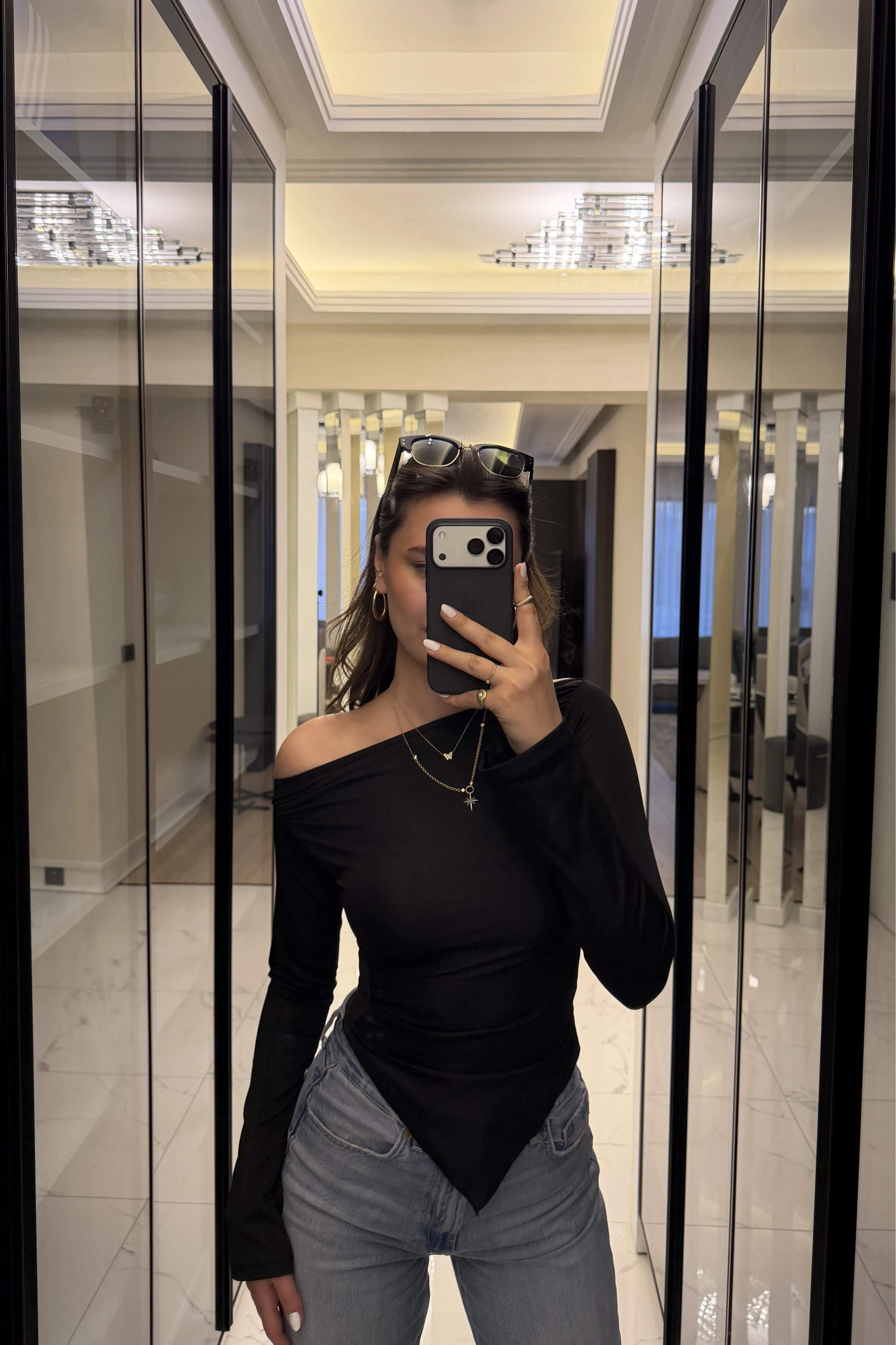 Siyah Hailey Kayık Yaka Asimetrik Kesim Bluz