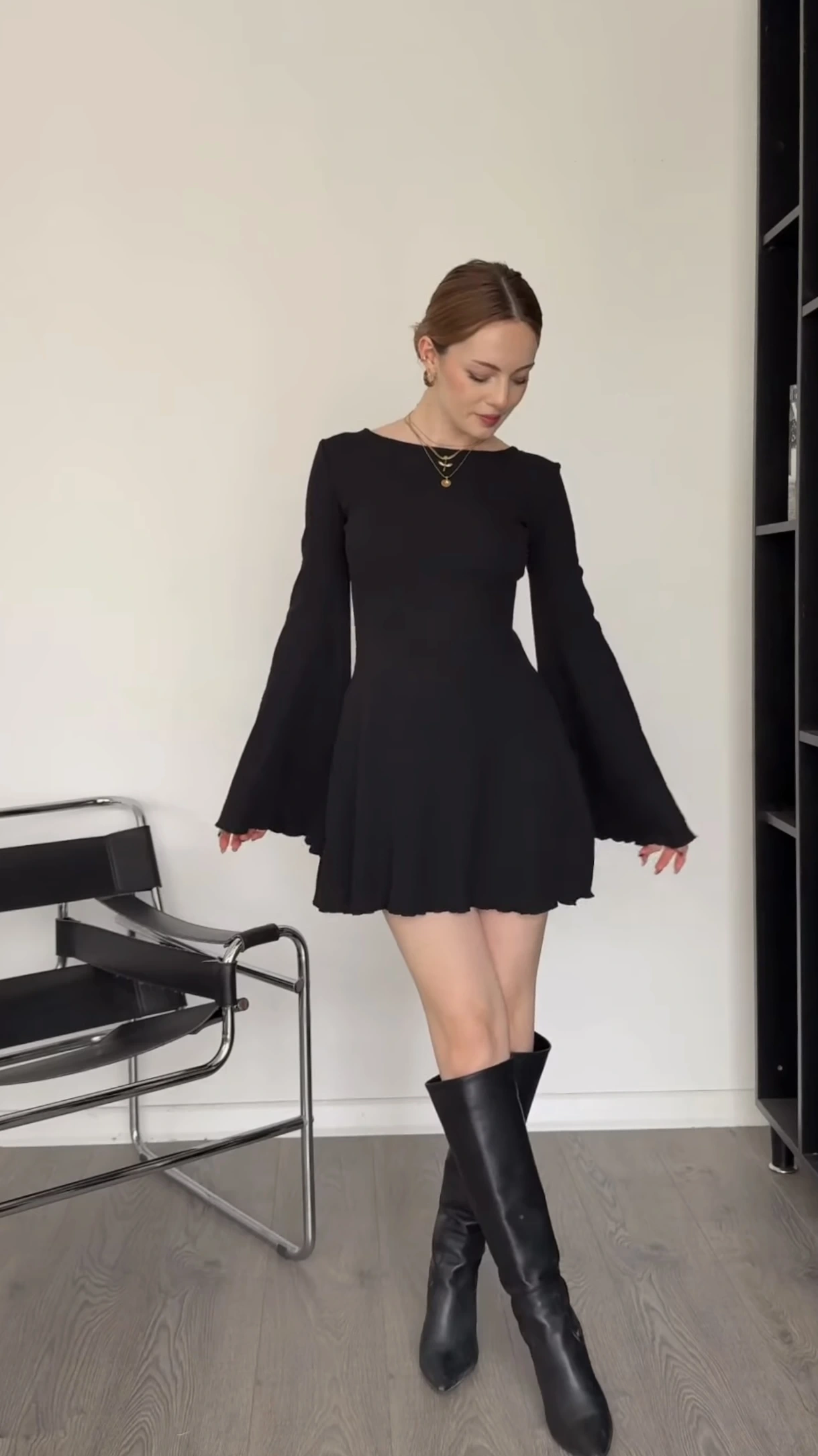 Siyah Jiex Bağcık Sırtlı Volan Elbise