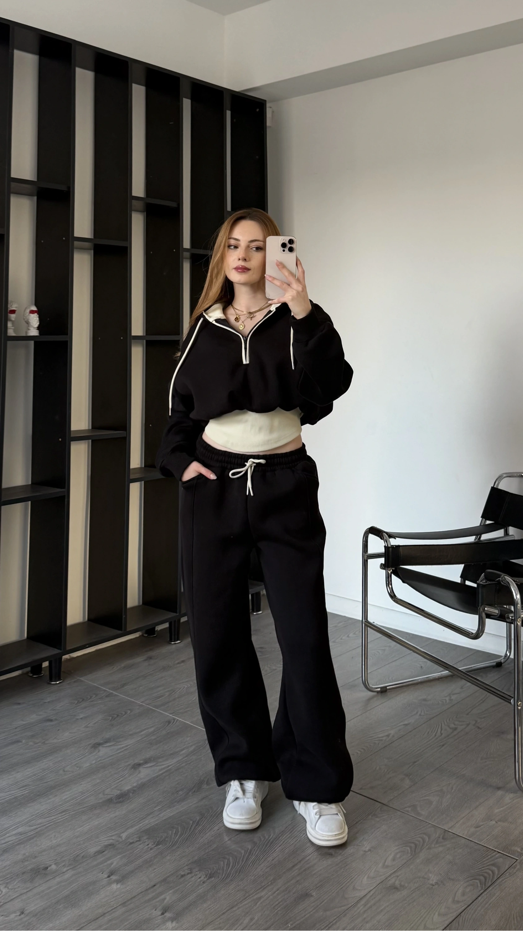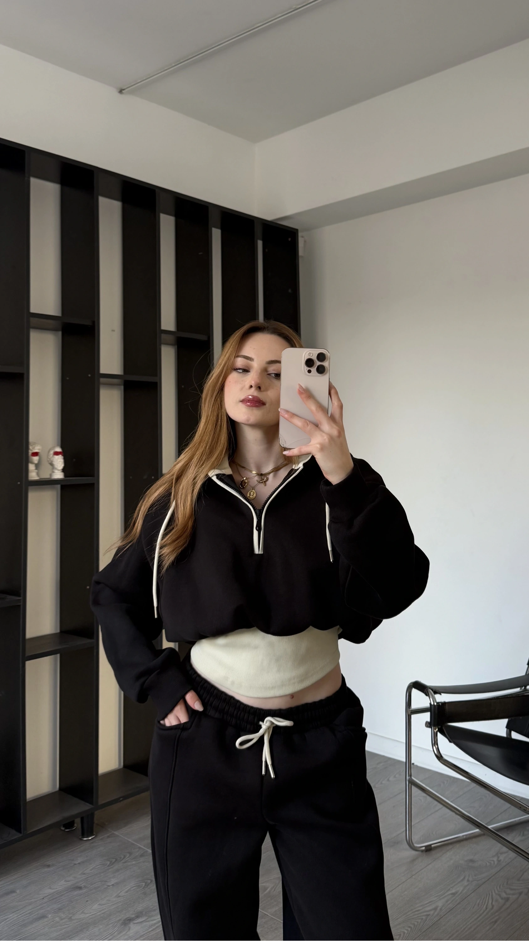 Serena Siyah Asimetrik Kesimli Vatkalı Takım