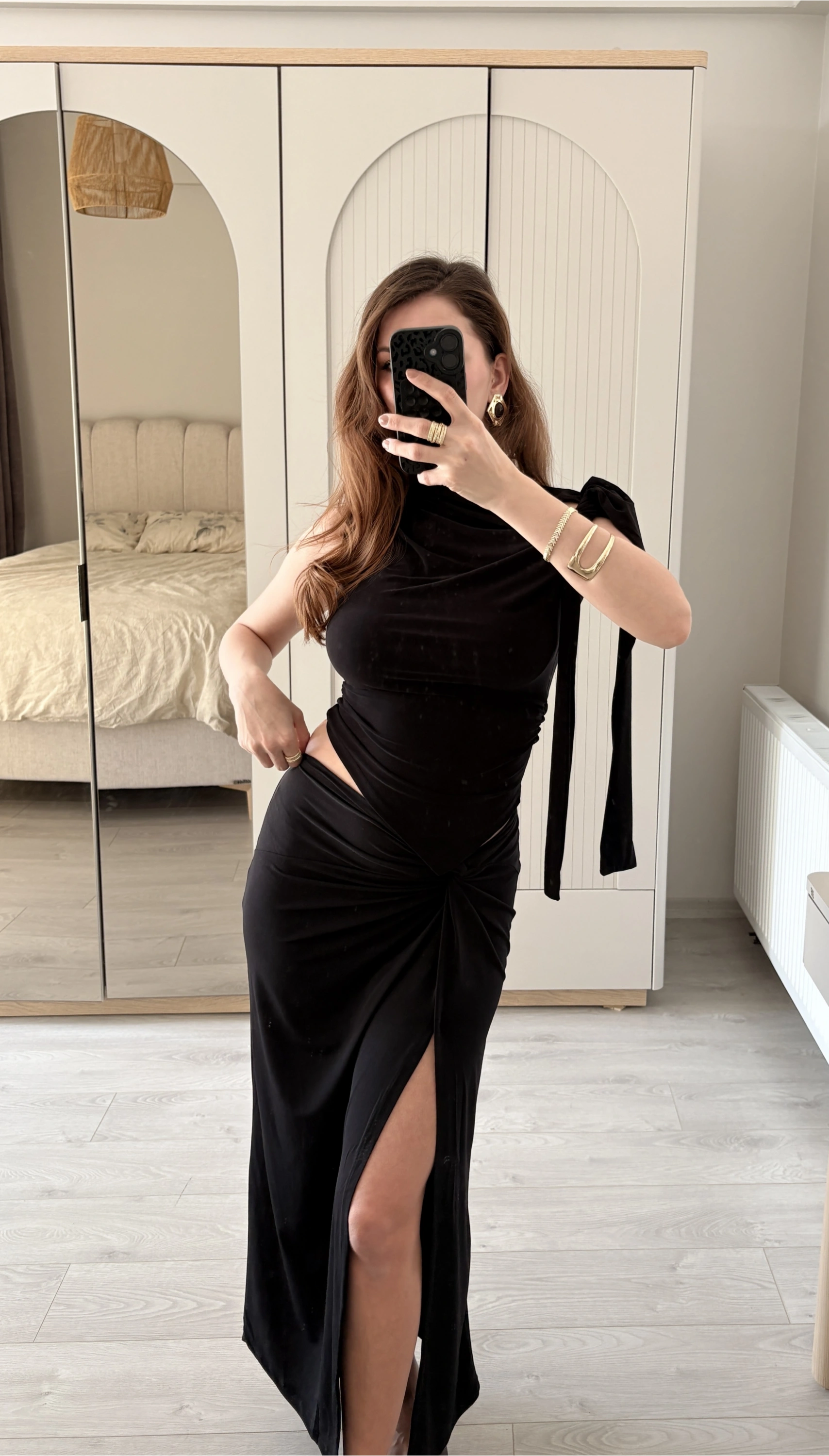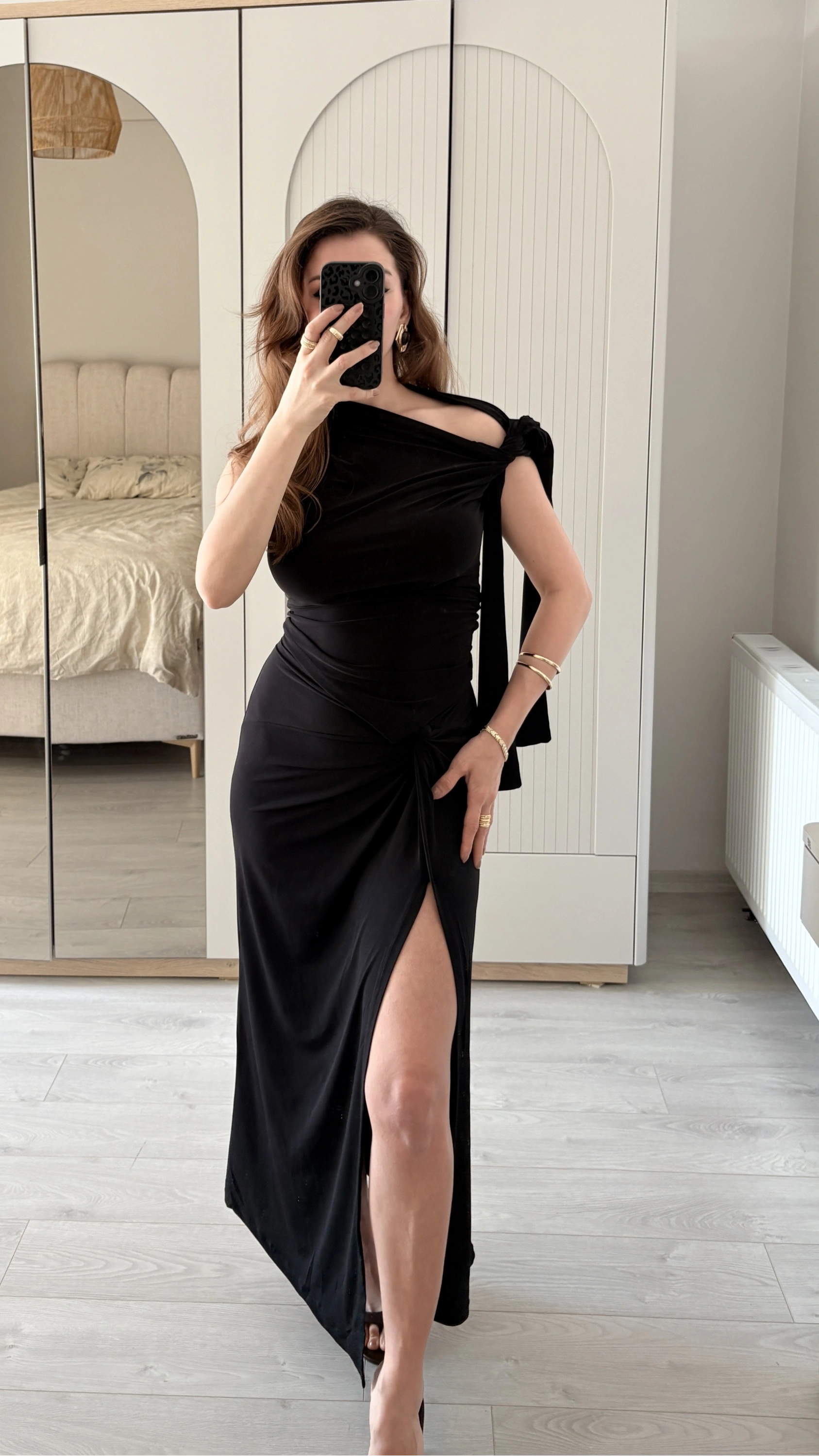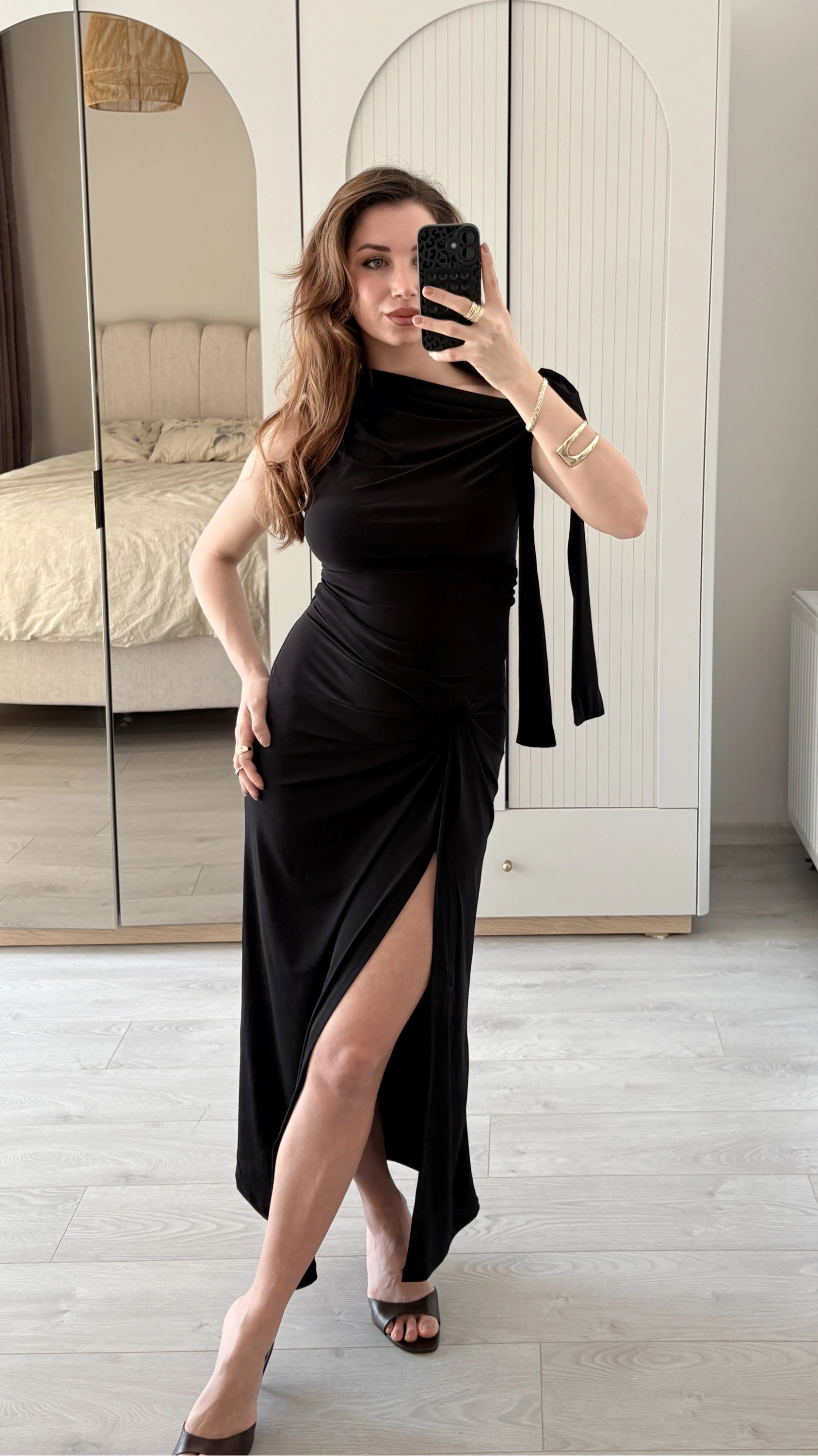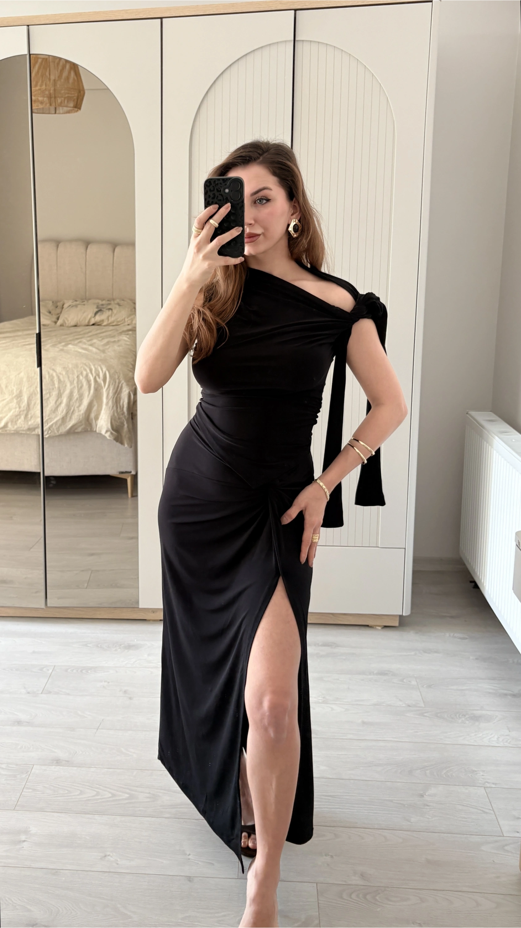 Siyah Tek Omuzlu Drapeli Bluz