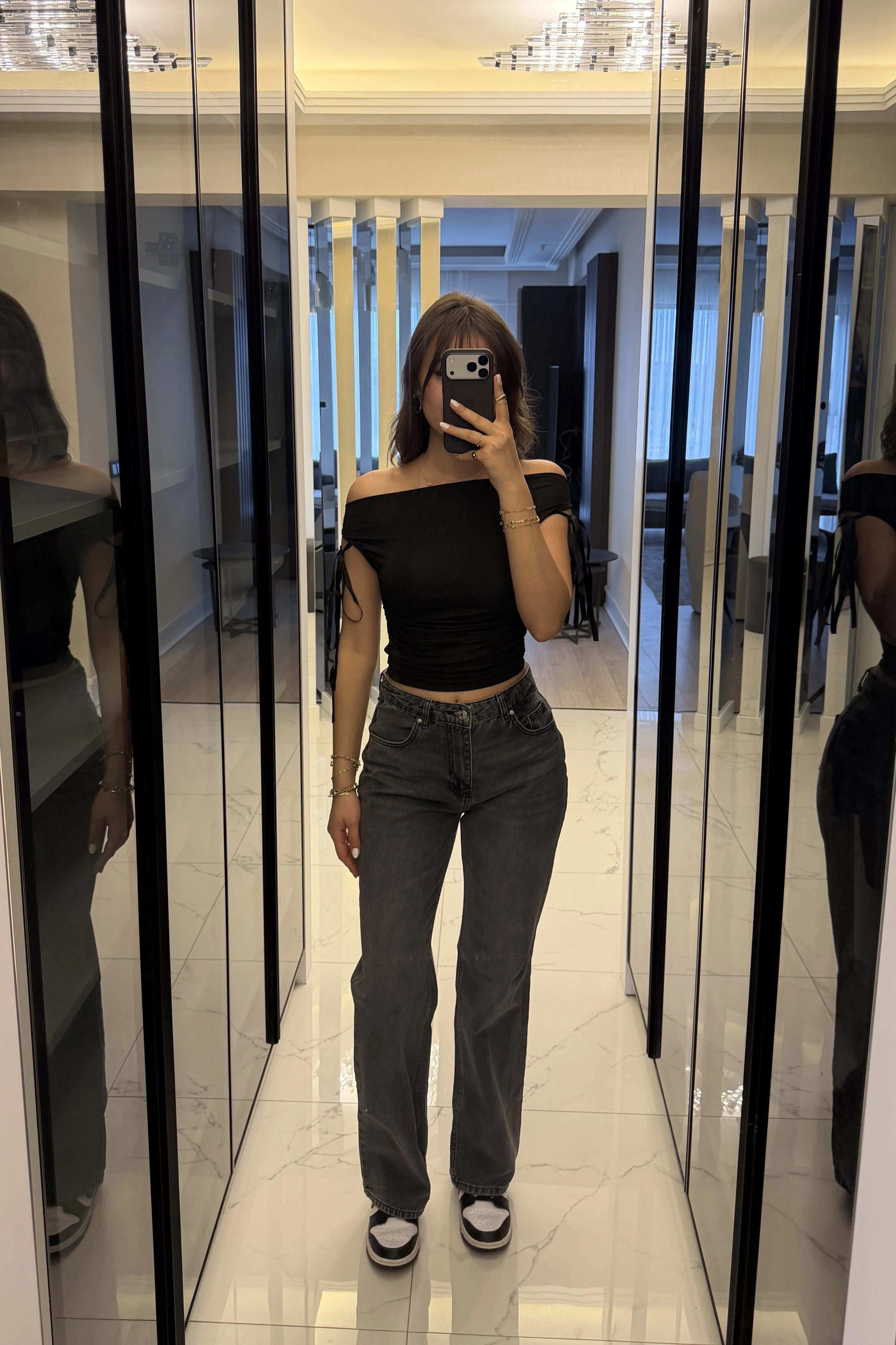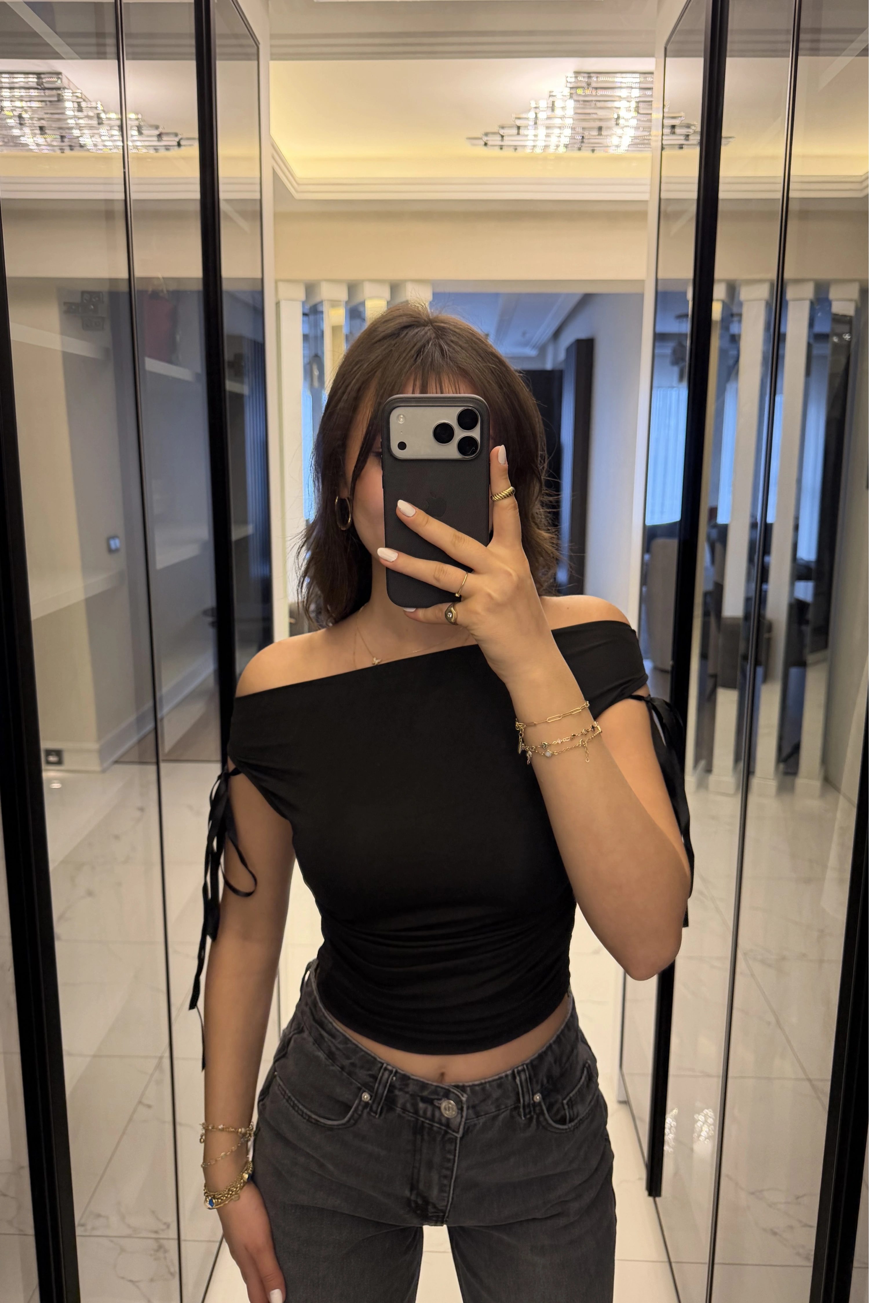 Siyah Mely Kurdele Kol Detaylı Bluz