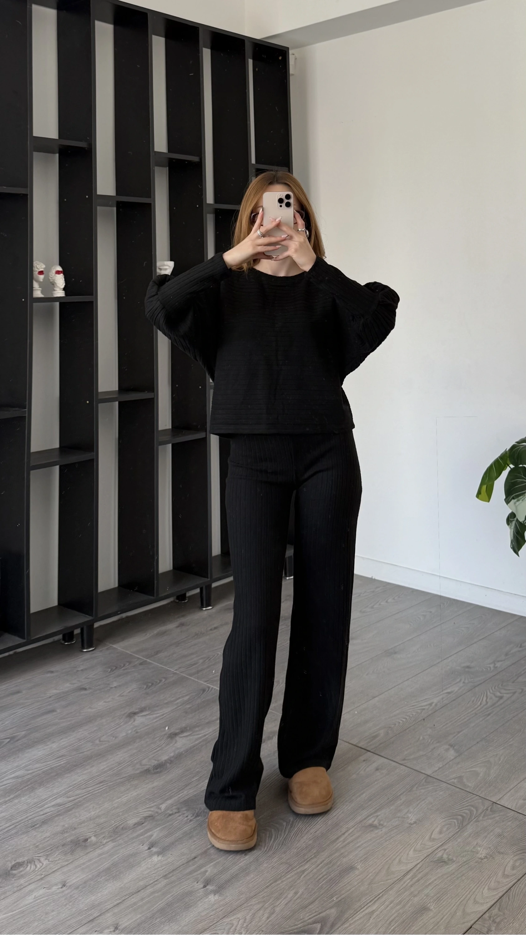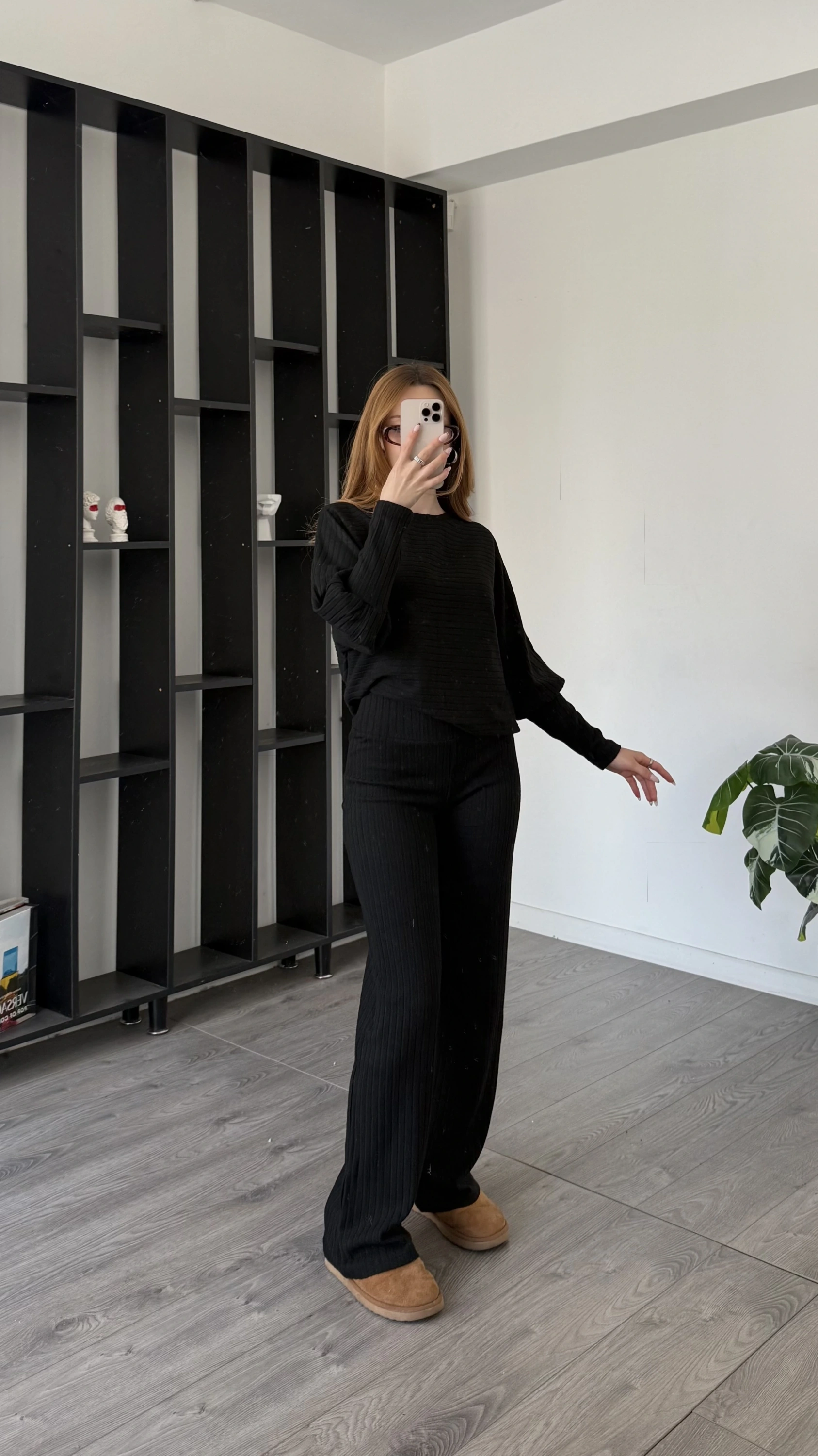 Siyah Oys Muadil Yüksek Bel Toparlayıcı Tayt