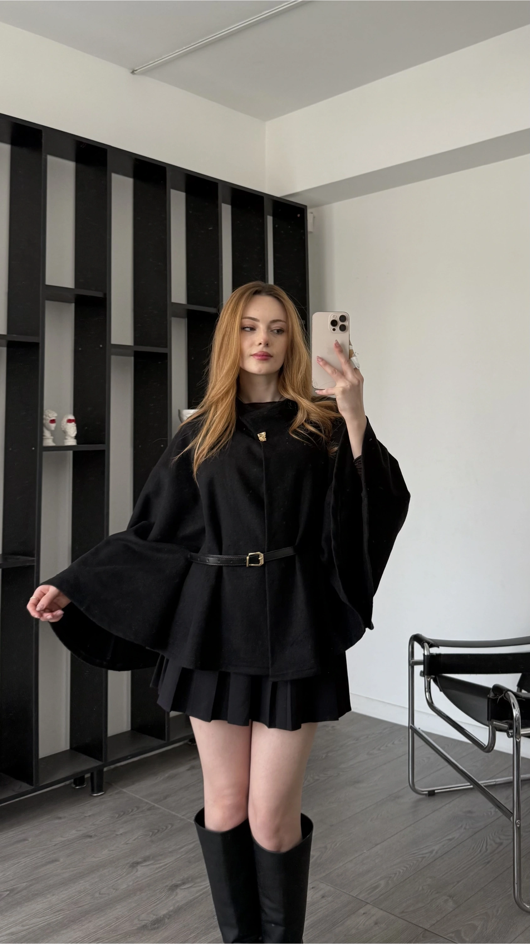 Siyah Rozy Kemerli Kaşe Panço